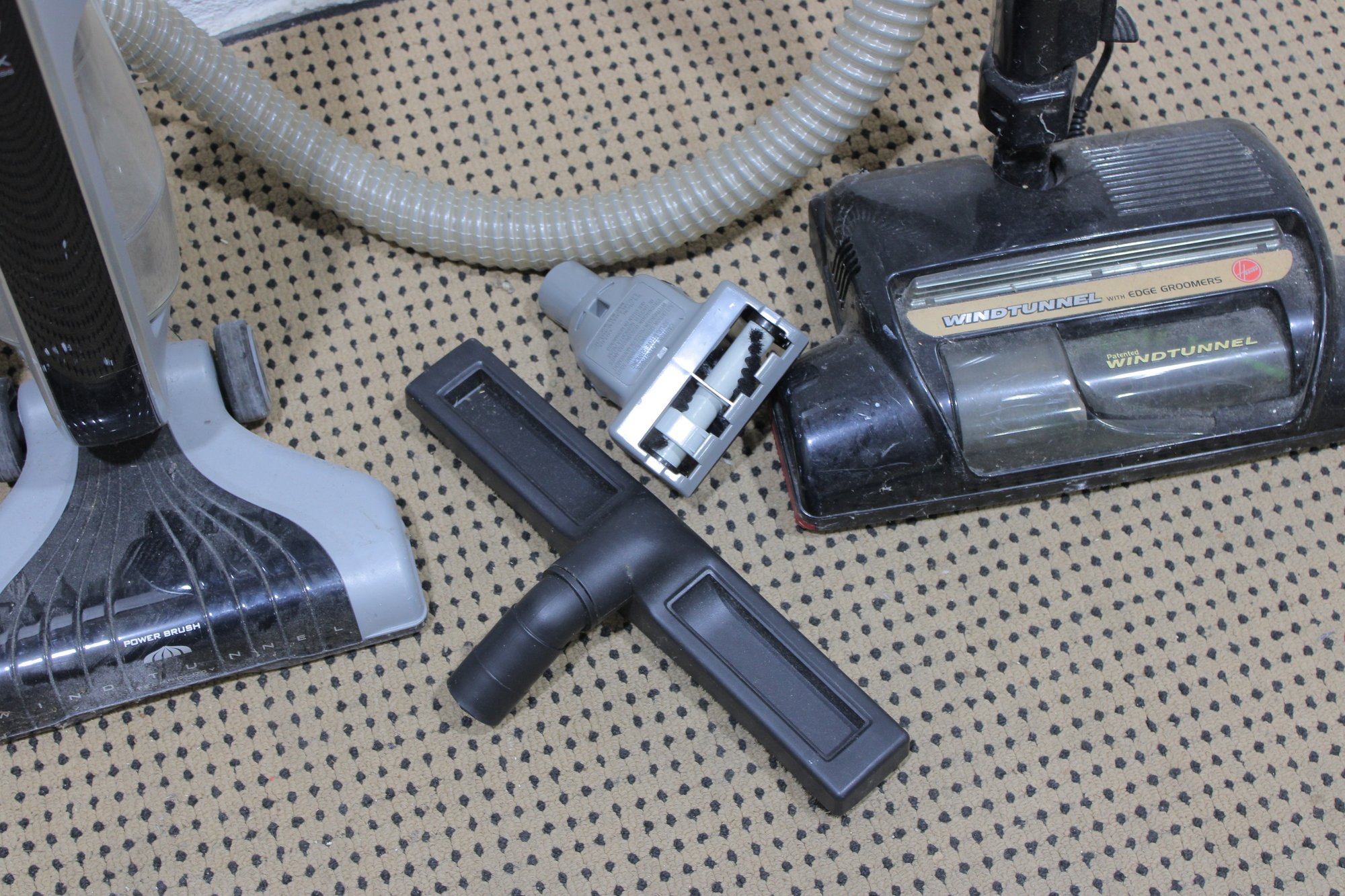 Mixed vacuum cleaner lot featuring a Eureka Boss WindTunnel canister vacuum along with a Hoover LINX stick vacuum and multiple cleaning attachments. A practical bundle ideal for home cleaning, resale, or spare parts.