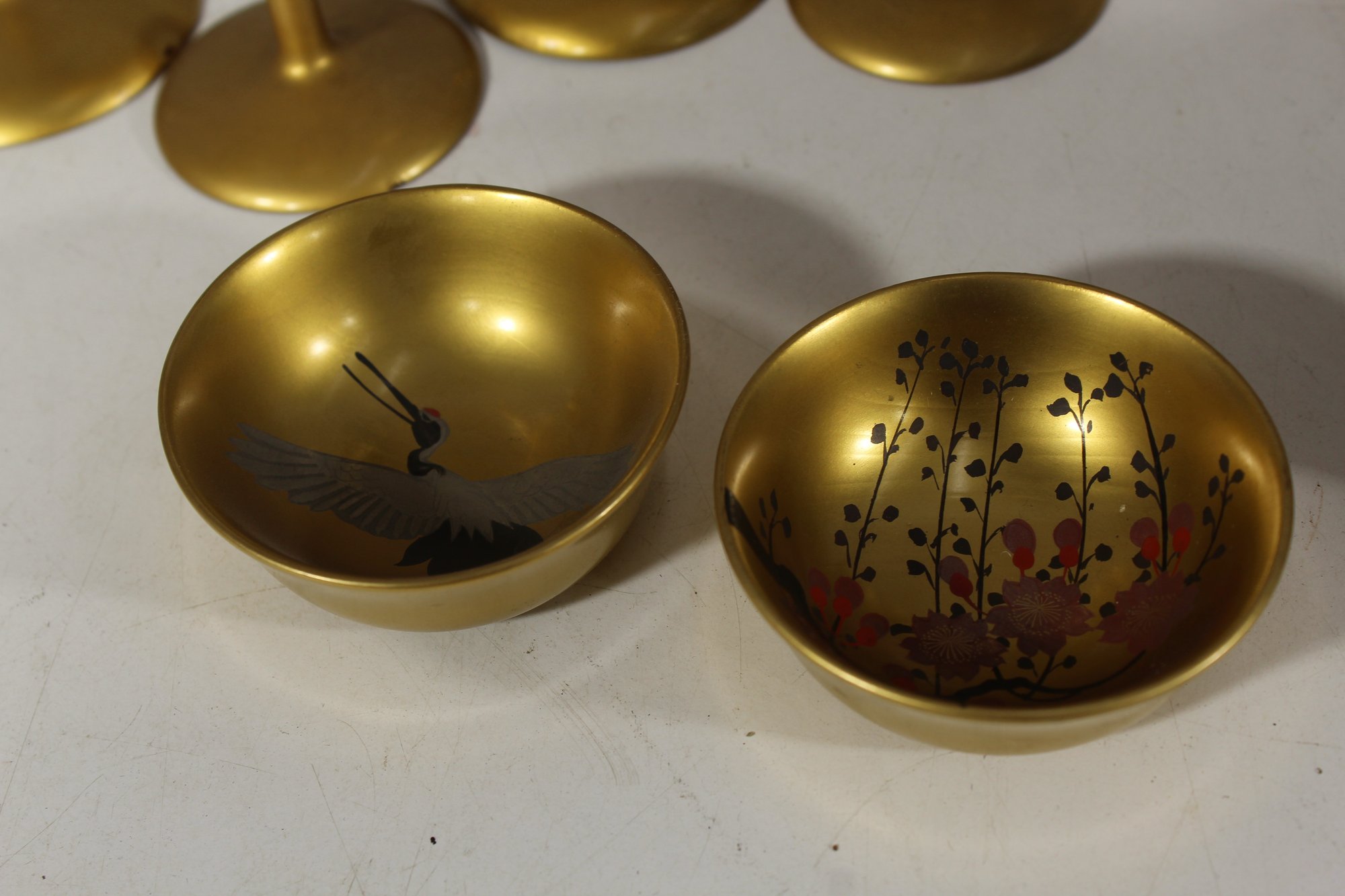 2 Small Bowls: Featuring cranes and botanical patterns in gold.