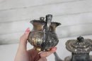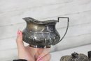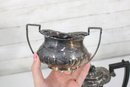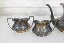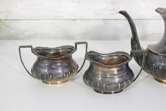 a beautiful I.F.S. (International Silver Co.) silver plated on copper three-piece tea set, proudly marked “Made in Sheffield, England.” This classic set includes a teapot, open sugar bowl, and creamer.