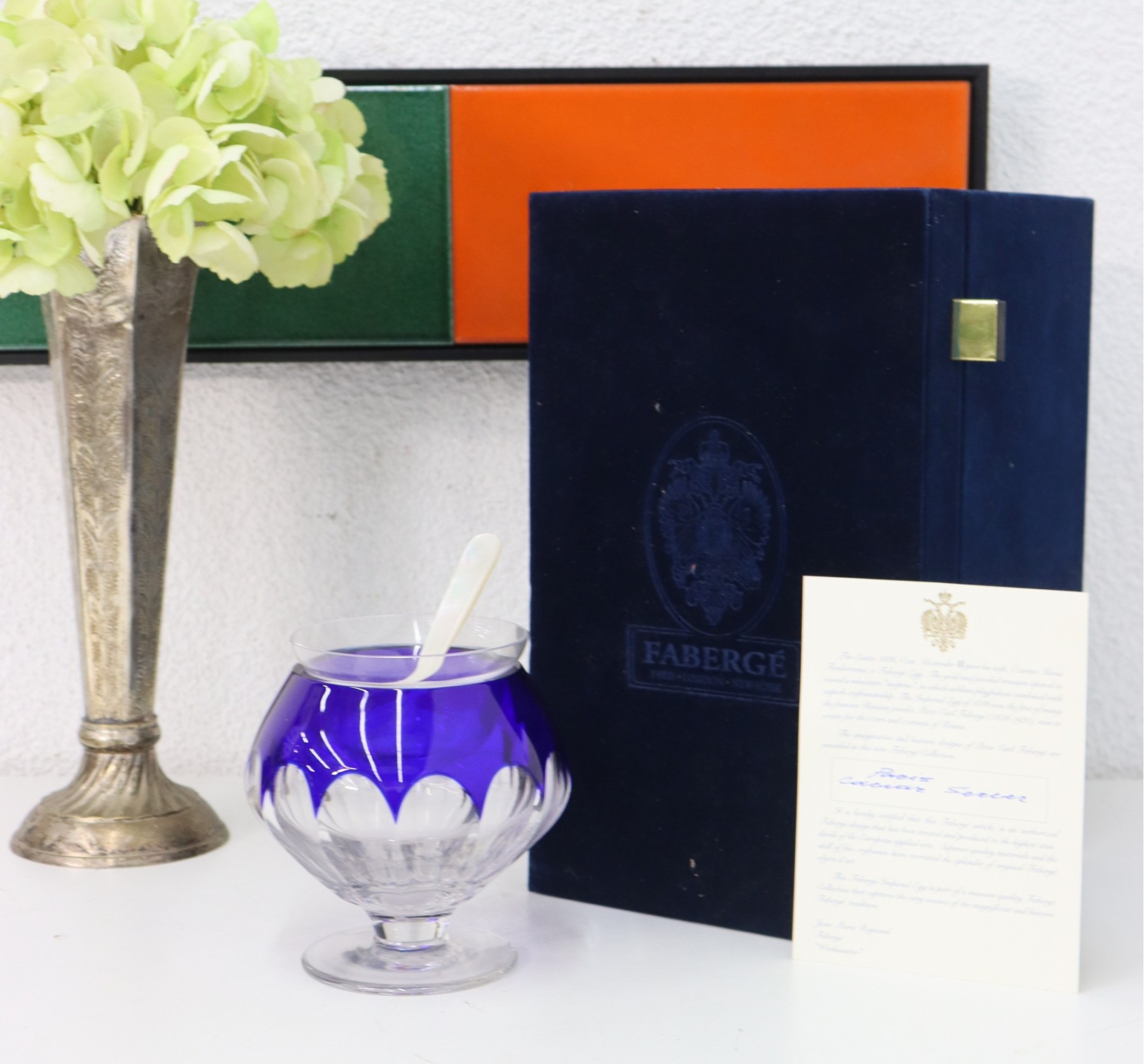 Faberge Crystal Caviar Service - Cobalt Blue And Clear - With Presentation Box