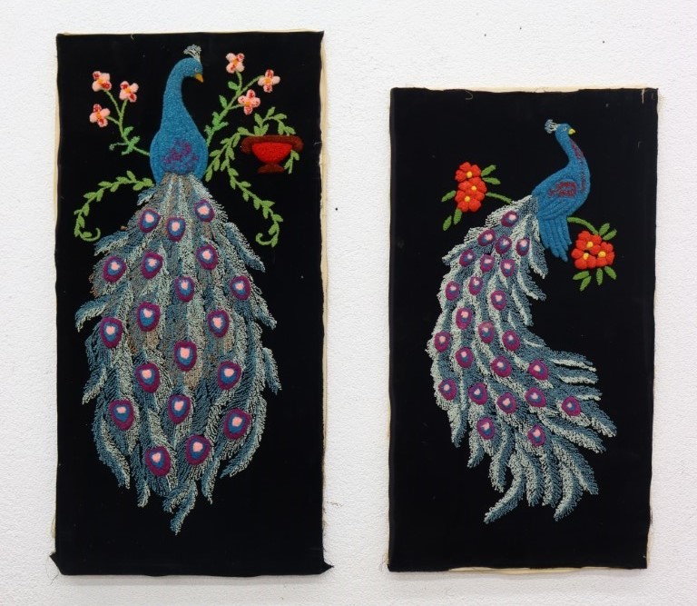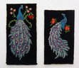 Fabulous Pair Of Brilliant Peacock Vintage Embroideries, On Stretcher Frame