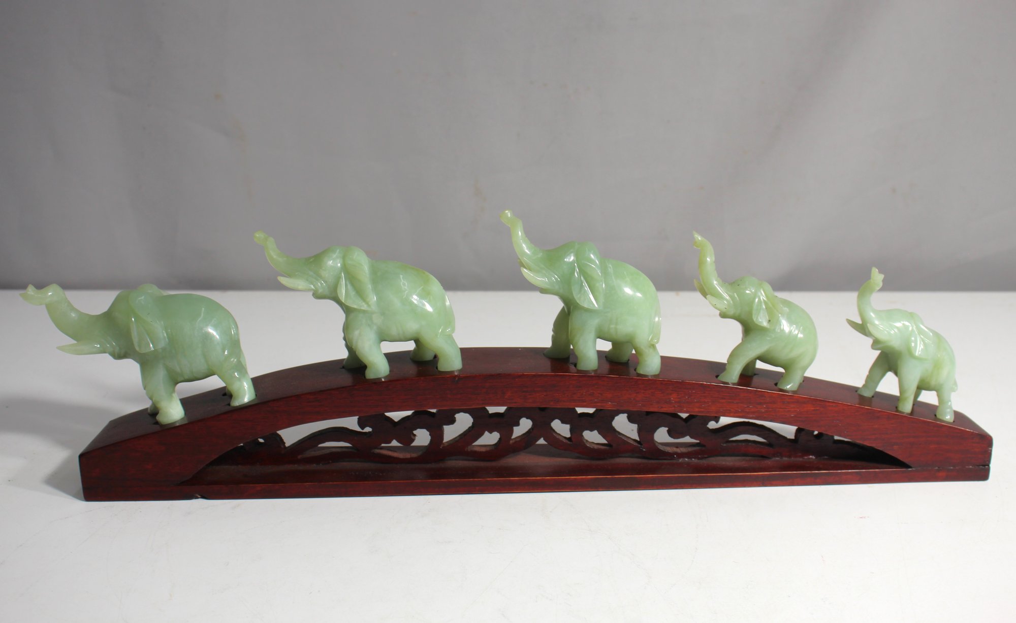 Five Chinese Jade Elephants On A Stand 18.5" Long
