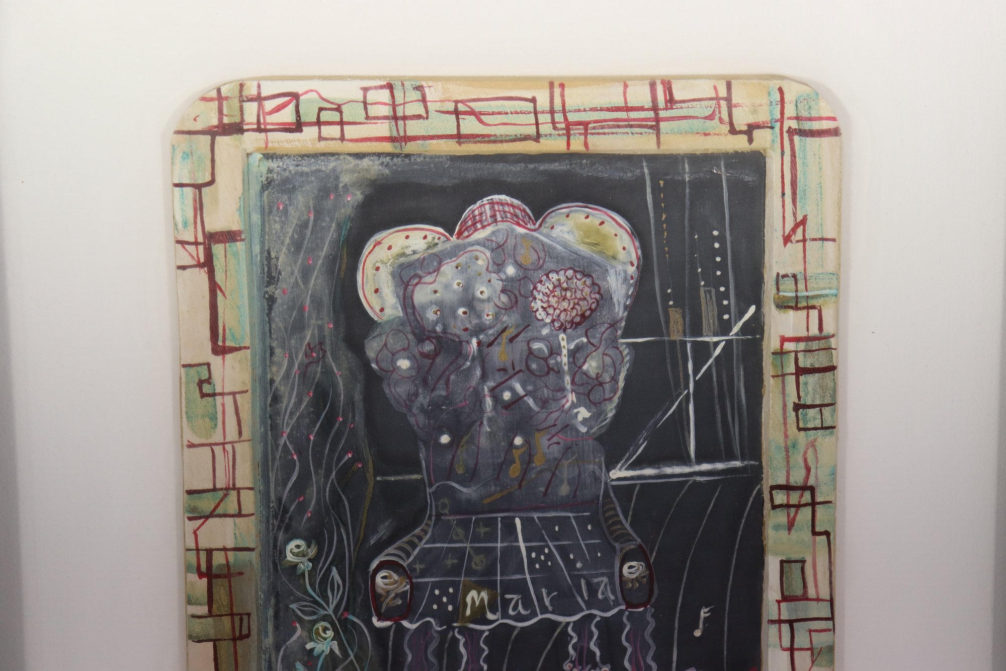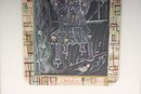 The piece combines a dark central image with a patterned border, giving it strong contrast and depth. Fine details and graphic elements throughout the print reward close inspection, making it an excellent addition to a modern, contemporary, or eclectic art collection.