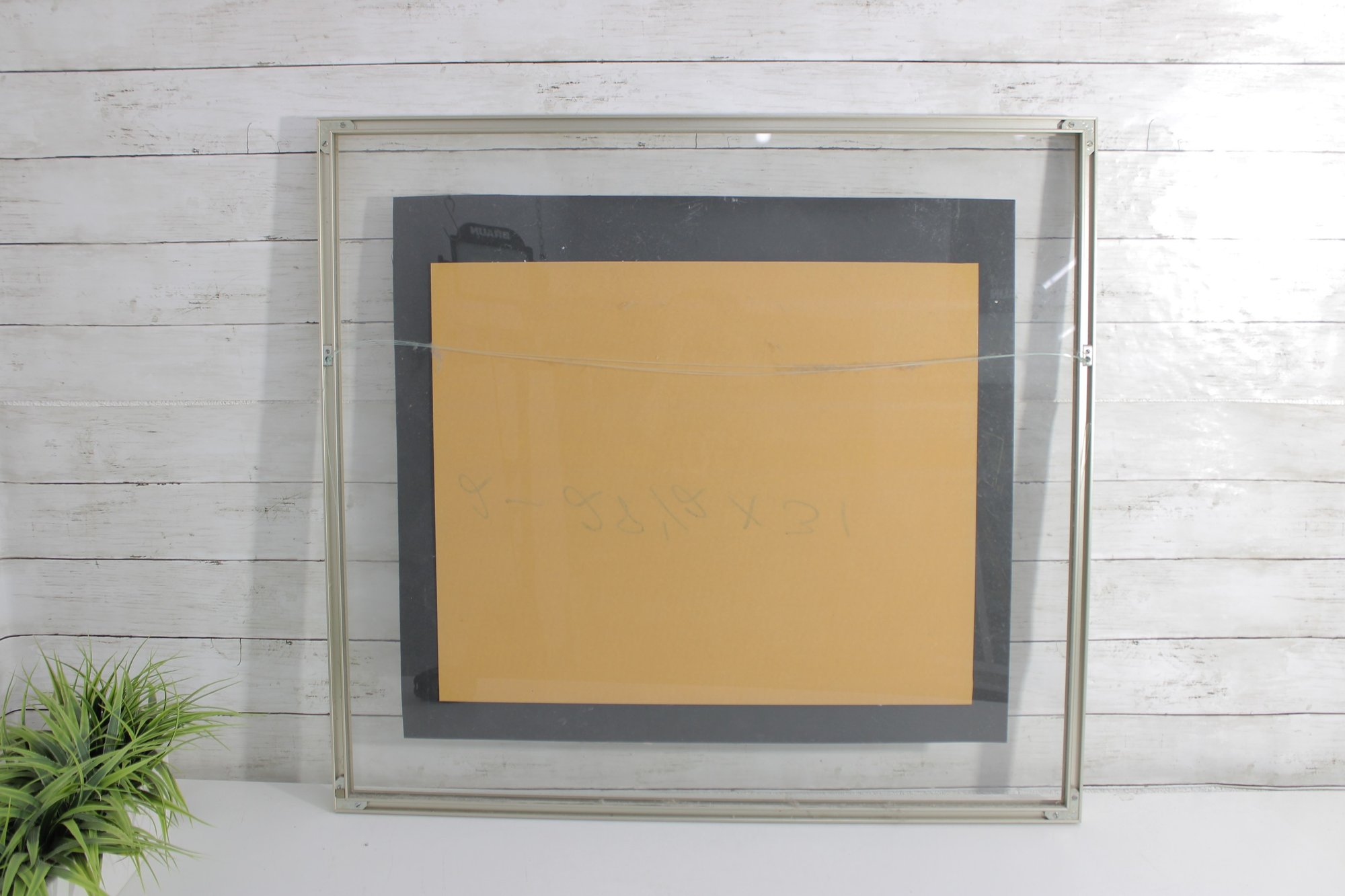 Housed in a modern frame with a glass front and neutral-toned molding, this piece is ready to hang and would make an excellent addition to contemporary or minimalist interiors.