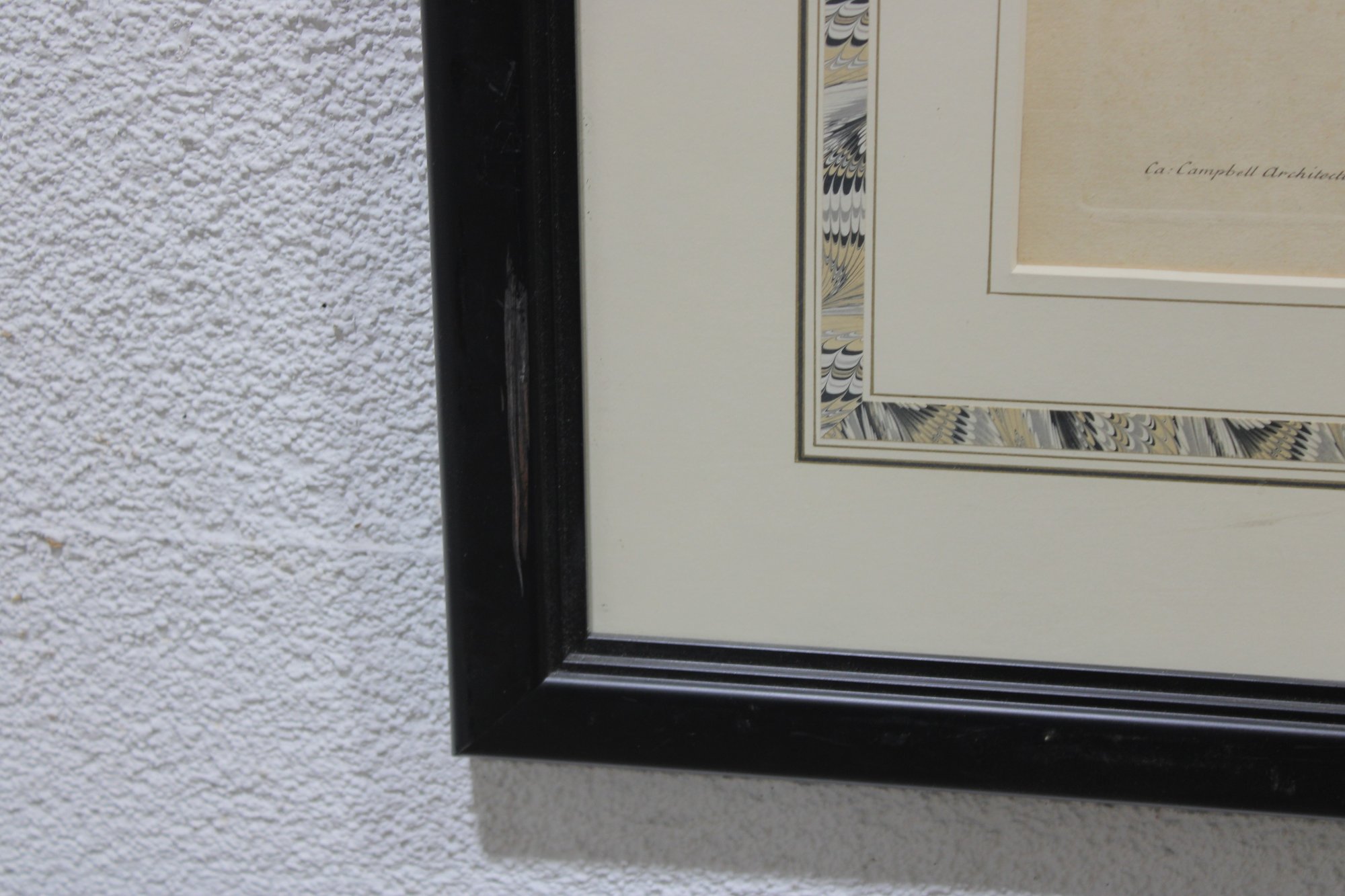 The print is professionally matted with a decorative inner mat and housed in a black-painted wood frame, giving it a refined, traditional presentation suitable for libraries, offices, or classic interiors.