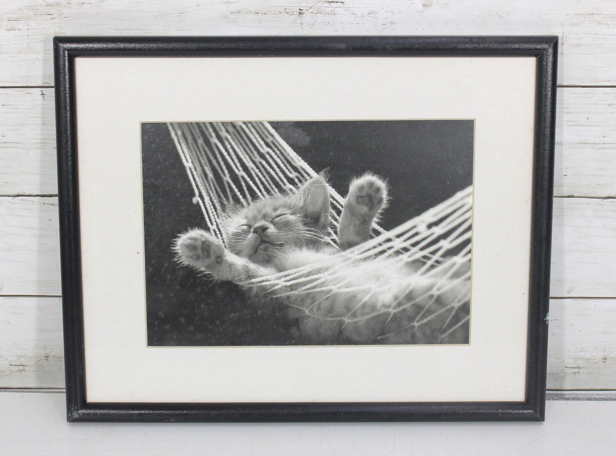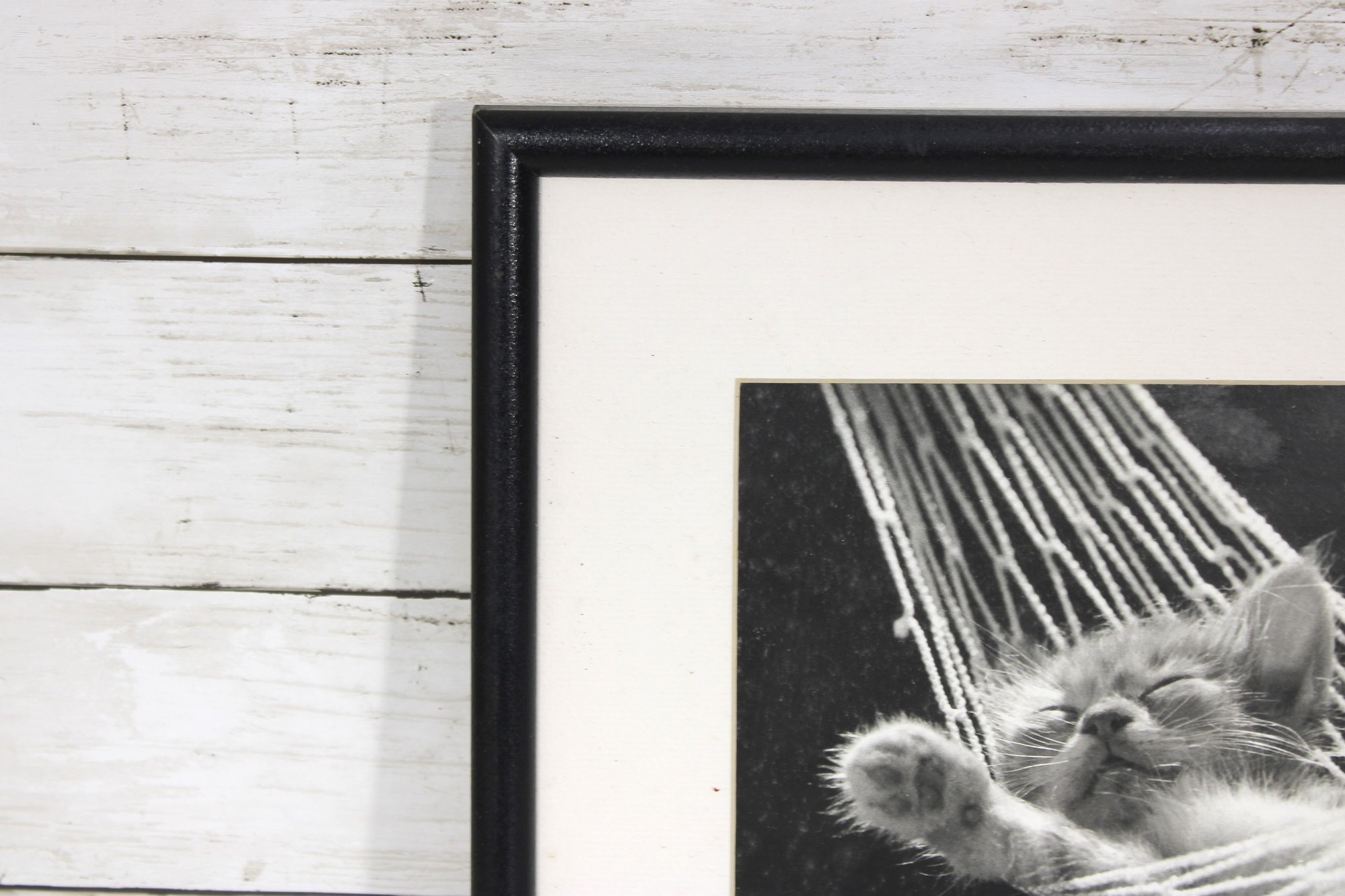 Framed Black & White Kitten Hammock Print Cute Cat Photography Wall Art 12" X 15"