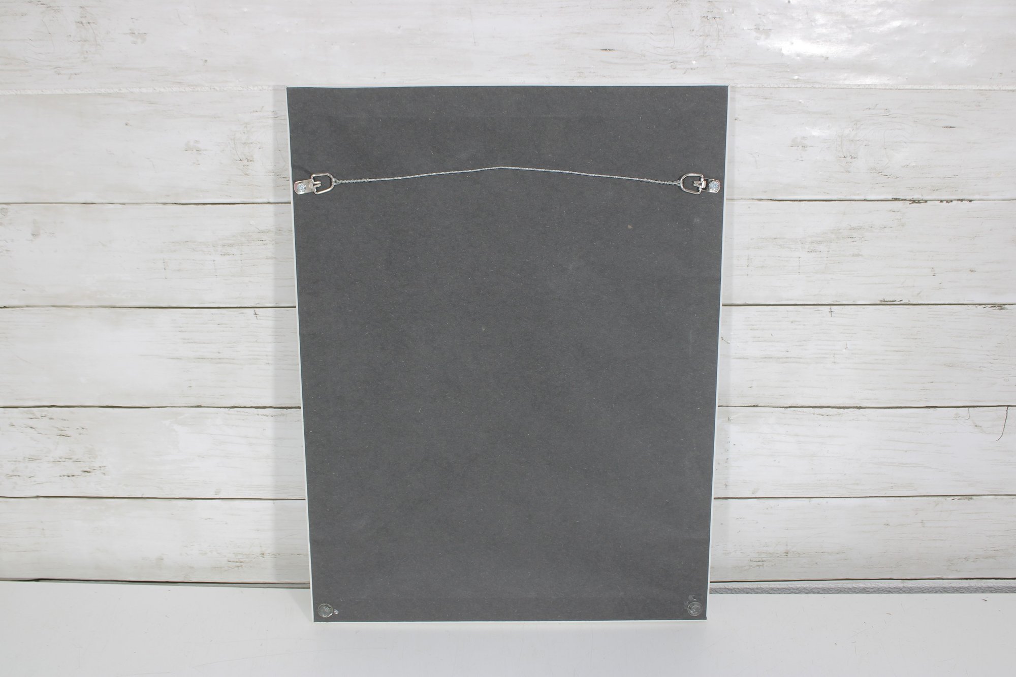 The artwork appears to be signed in the lower right corner (see close-up), adding to its charm and collectible appeal. It is professionally matted and set in a simple white frame that enhances the light, airy feel of the piece.