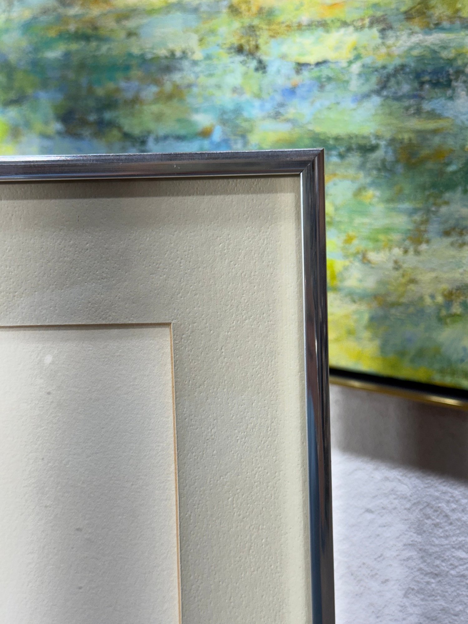 The drawing is signed by the artist in pencil and professionally matted and framed. Included on the reverse is an artist information sheet with biographical details, adding interest and context for collectors.