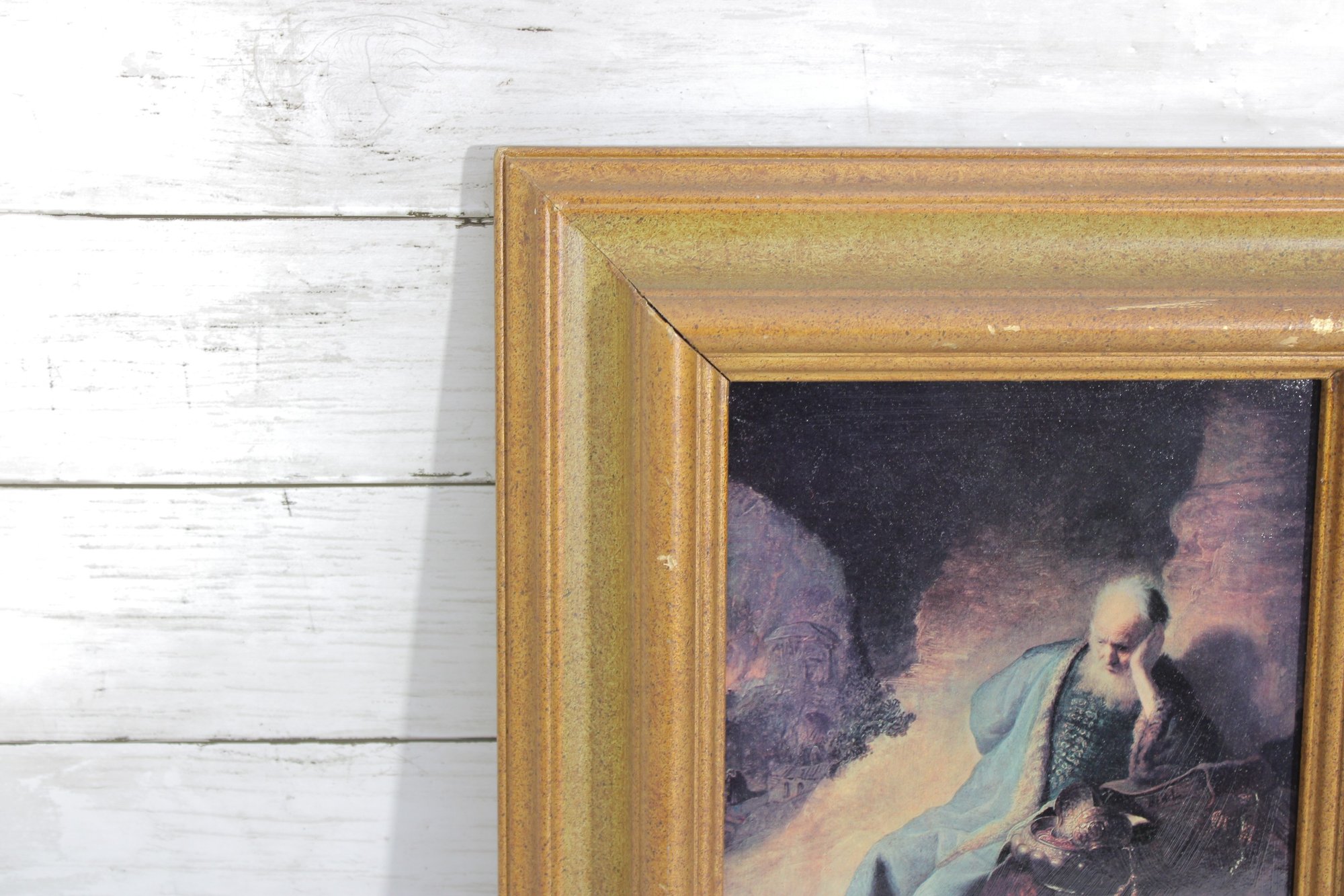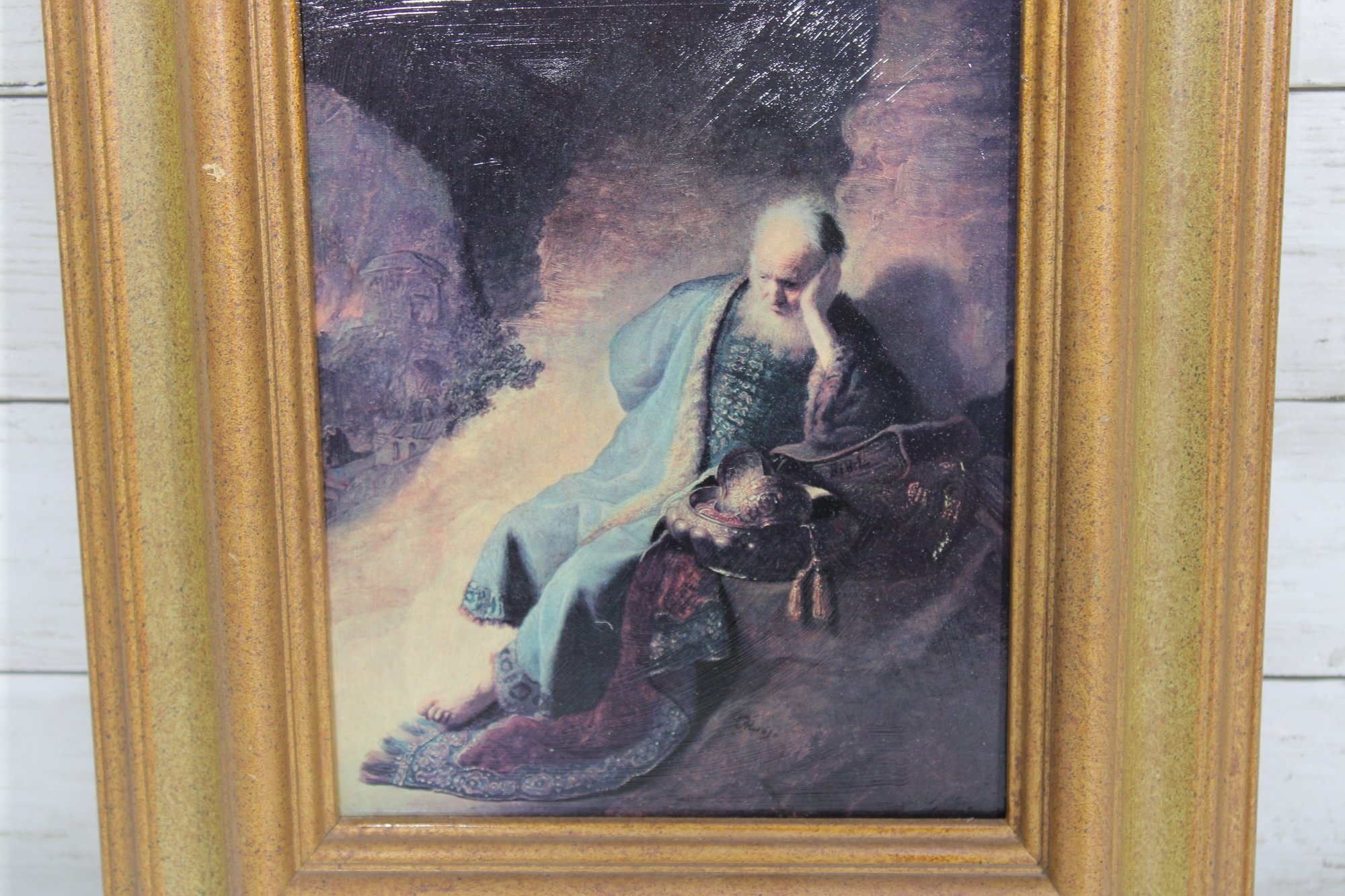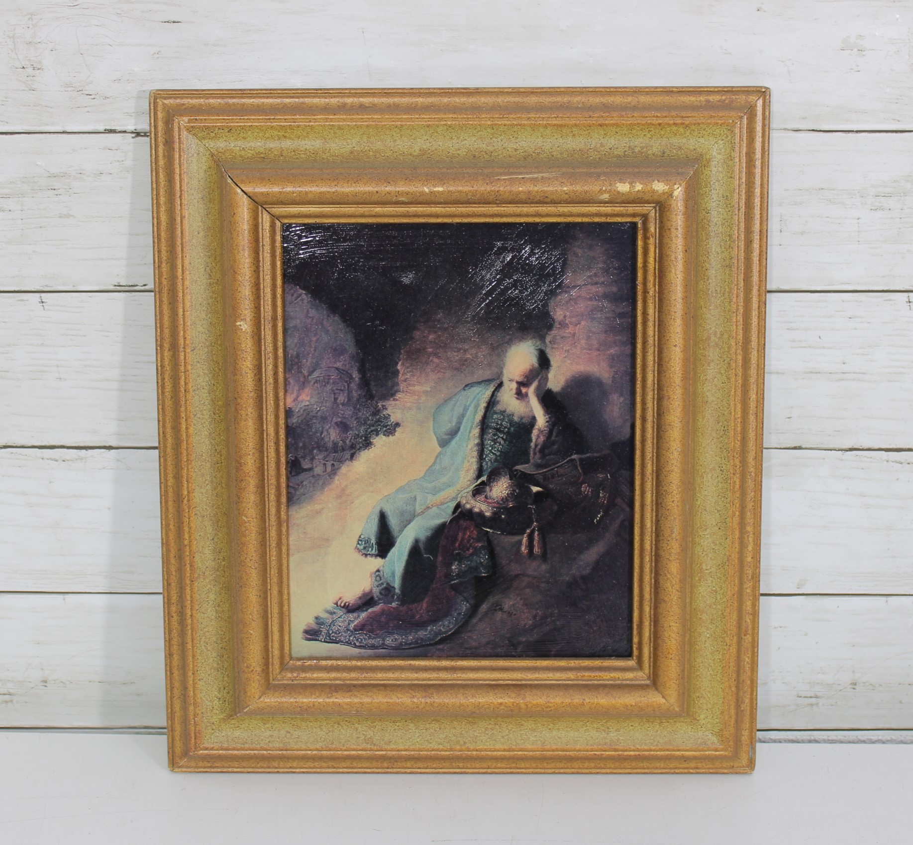 framed art print features a dramatic classical-style scene of a contemplative figure seated in a shadowed, atmospheric landscape. Rendered in rich, moody tones with soft highlights, the composition evokes the romance and emotion of Old Master paintings, making it a captivating focal point.