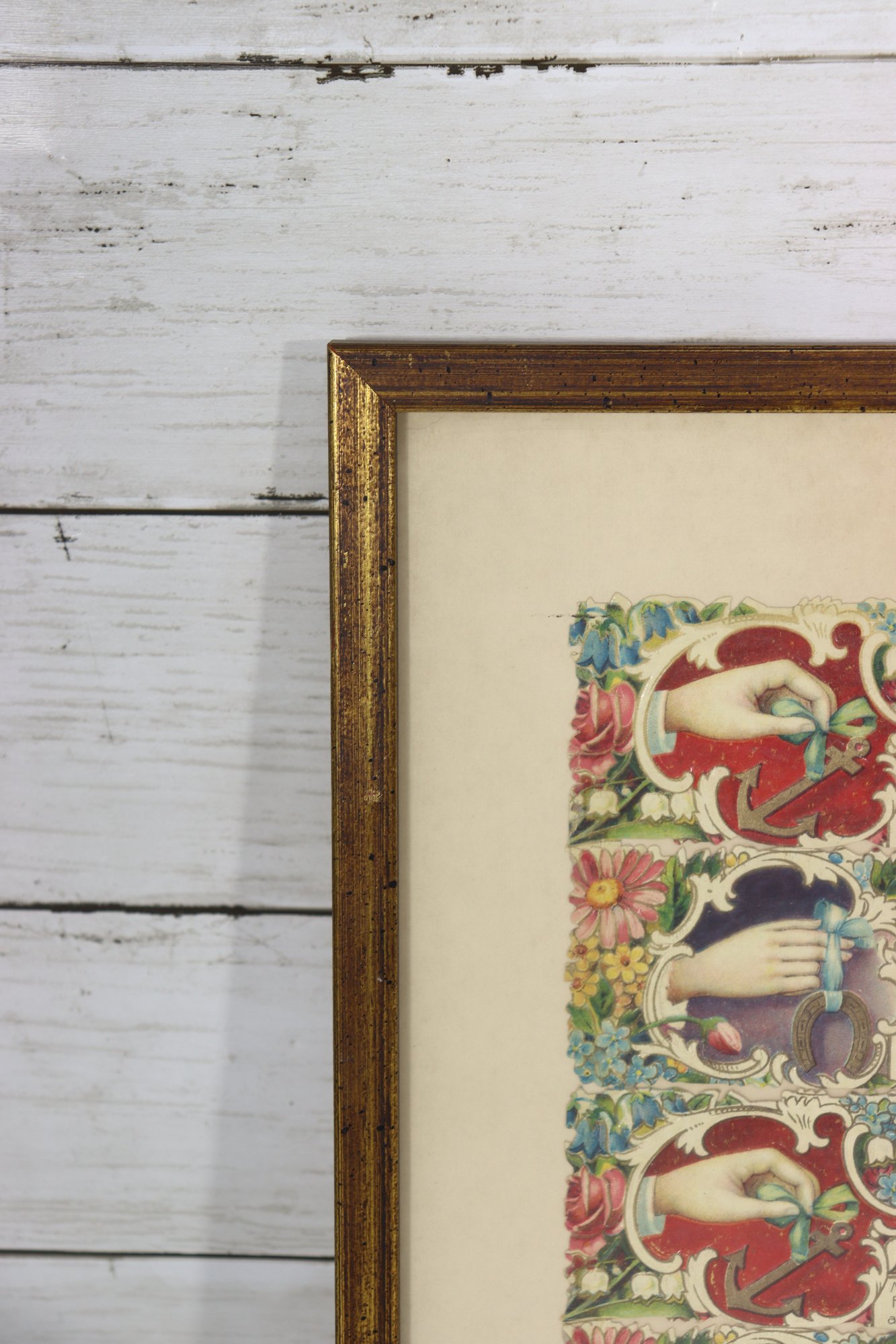 framed decorative art print featuring a richly detailed repeating floral and scroll pattern in the Art Nouveau style. The design showcases flowing organic forms, vibrant colors, and symmetrical motifs that create strong visual impact.