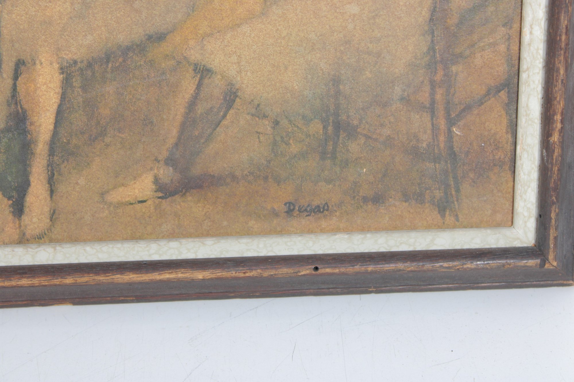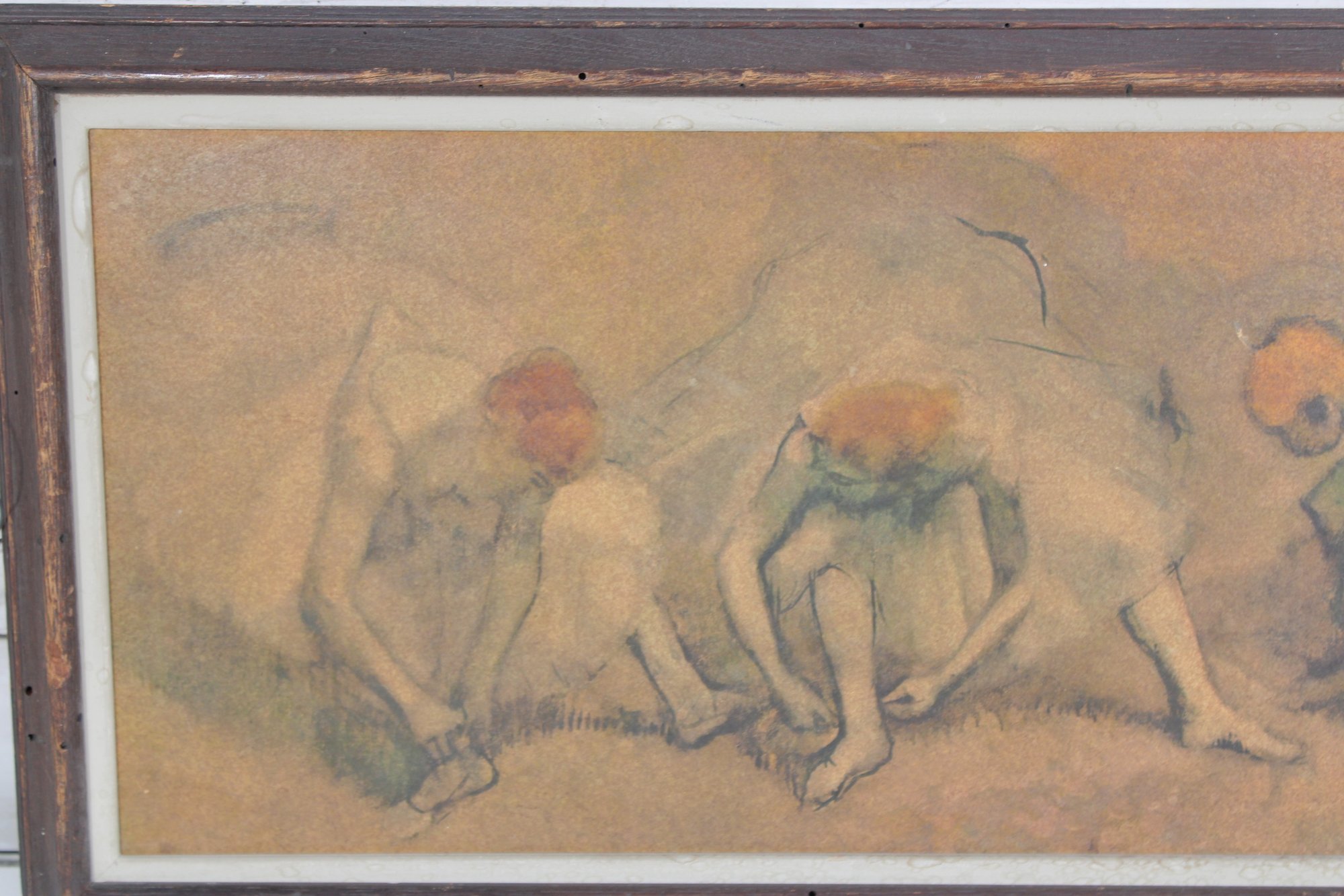 A framed print of “Frieze of Dancers” by Edgar Degas, featuring a graceful sequence of ballet dancers captured in motion. Degas, one of the most celebrated artists of the French Impressionist movement, is widely known for his studies of dancers, capturing their rehearsal movements and natural gestures with expressive lines and soft color.