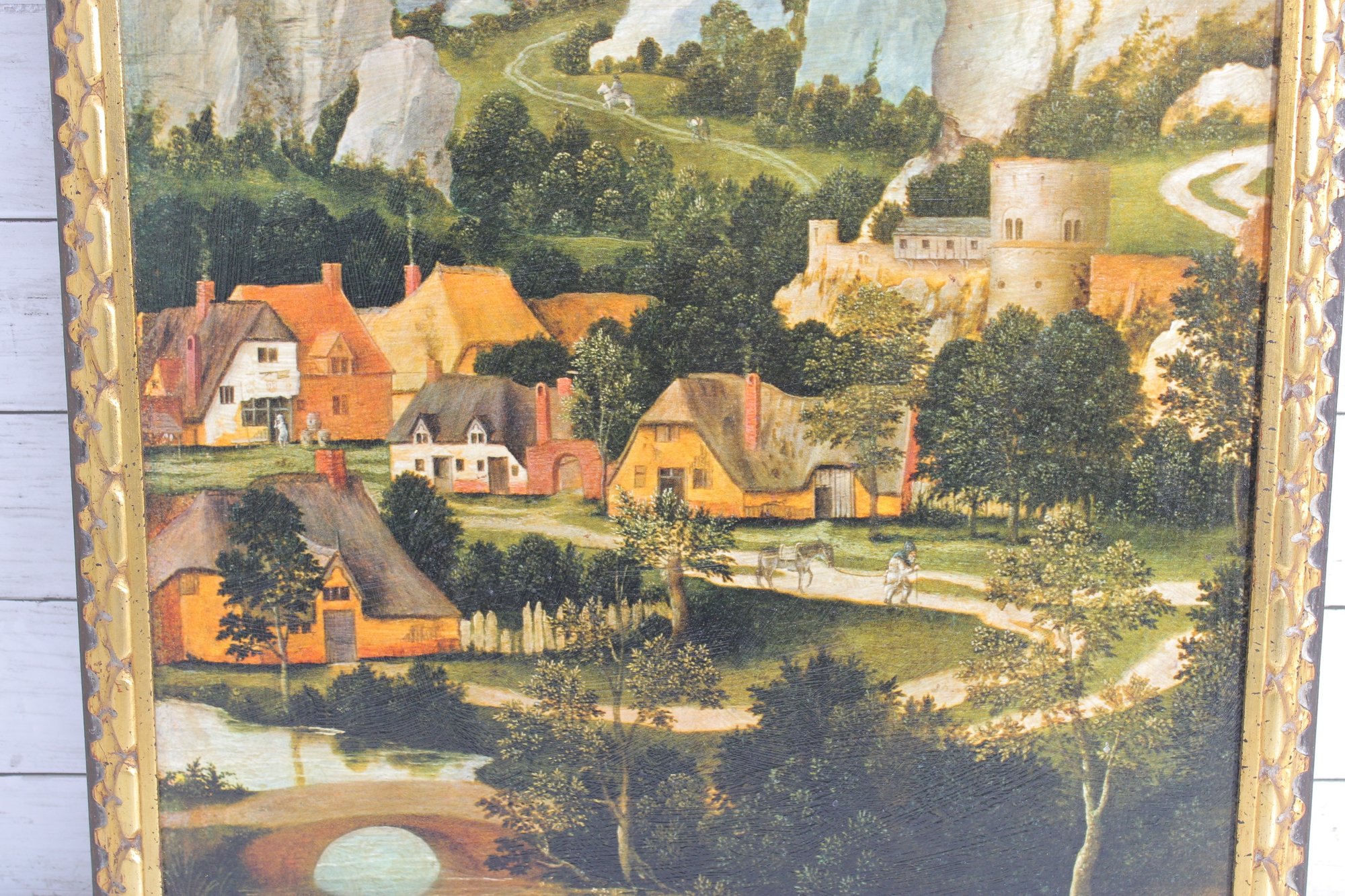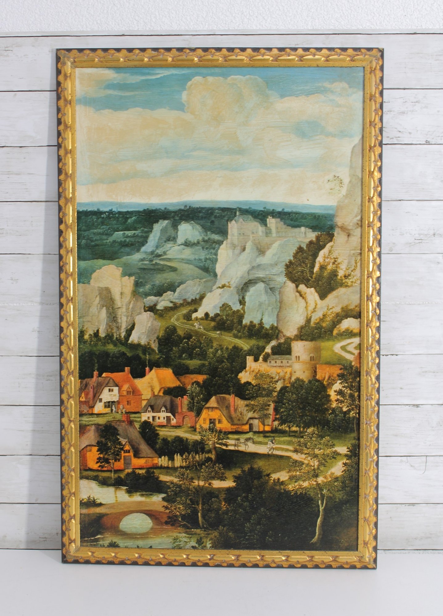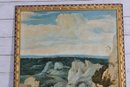 framed art print depicts a sweeping European landscape featuring dramatic white cliffs, winding roads, and a charming village nestled below. With its expansive sky, rolling countryside, and picturesque architecture, the scene evokes the romance of old-world travel and classic painting traditions.