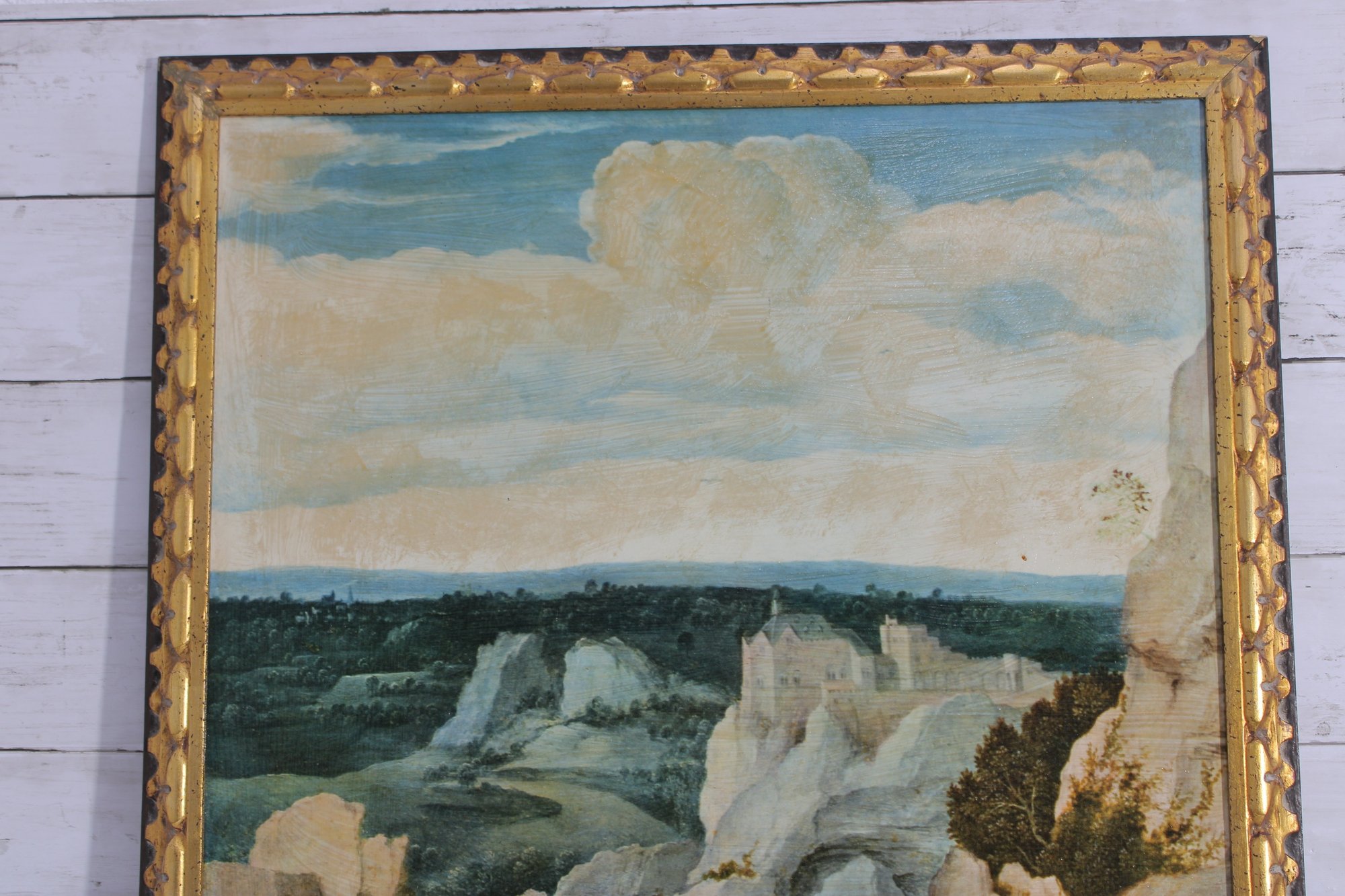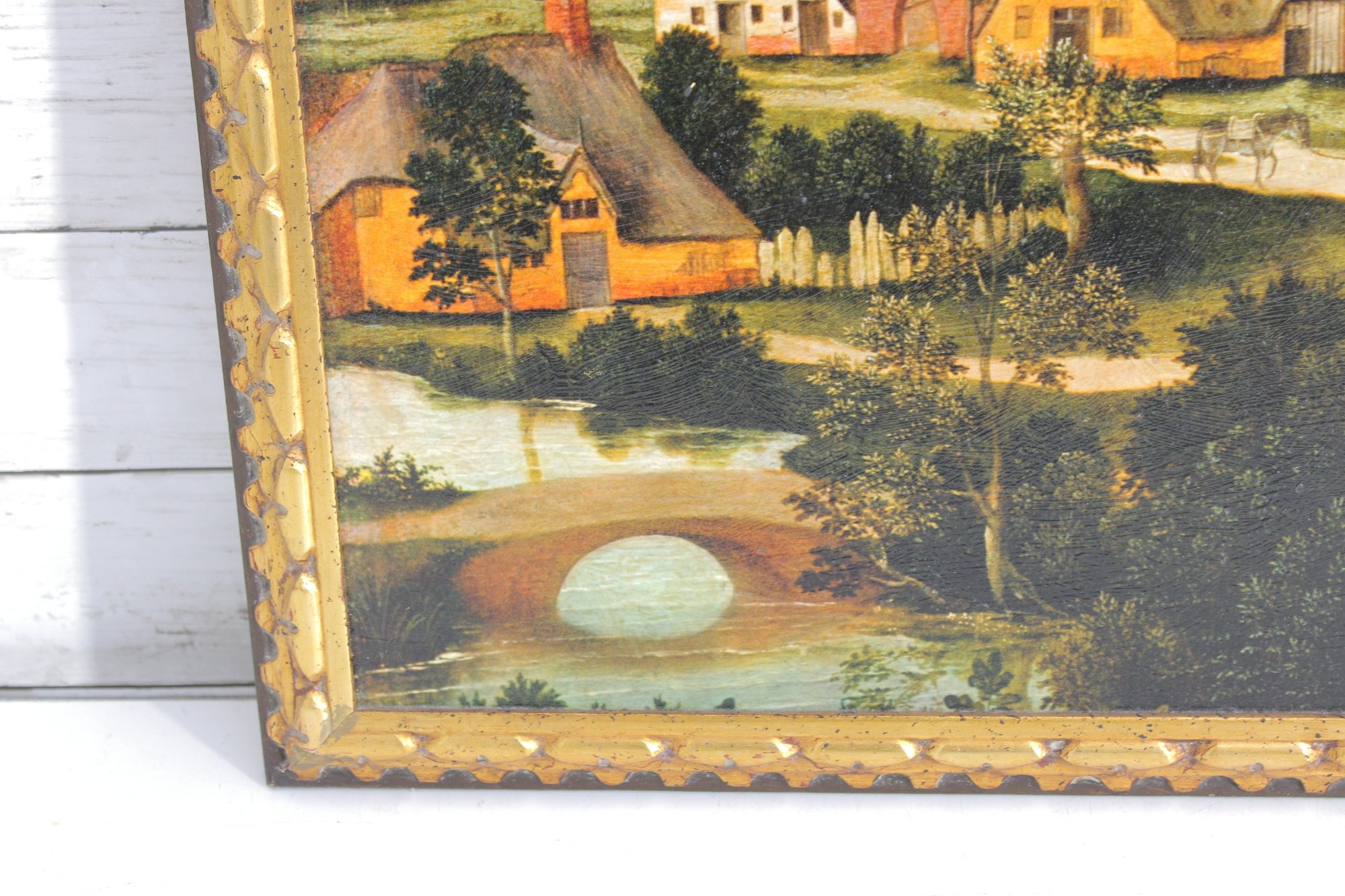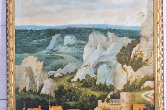 The artwork is presented in an ornate gold-tone frame with decorative edging that beautifully complements the historic feel of the scene.