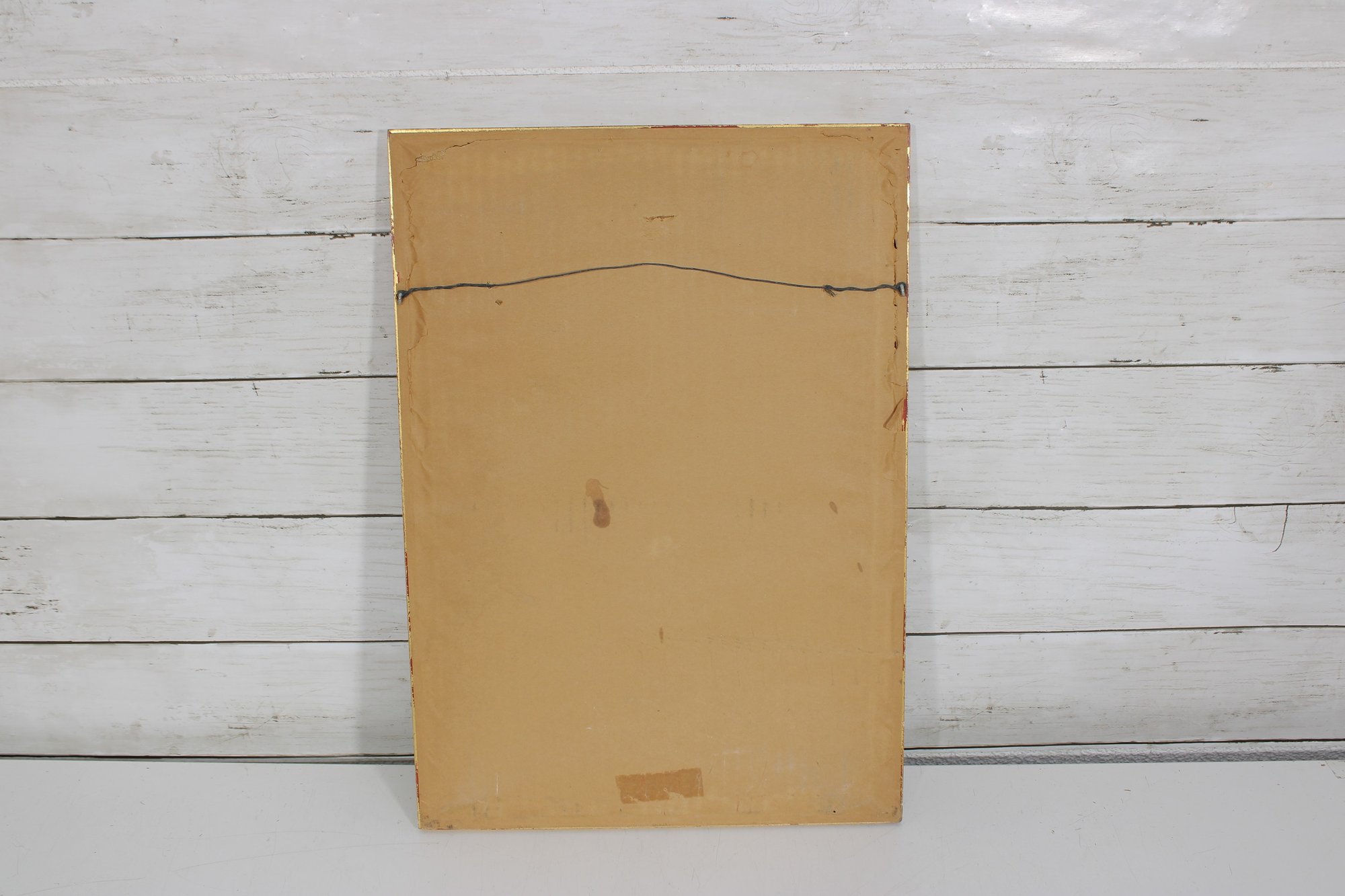 The artwork appears to be hand-signed in the lower right corner (see photos), adding to its character and potential collectible value. It is professionally matted and housed in a gold-tone frame that complements the warm palette of the piece.