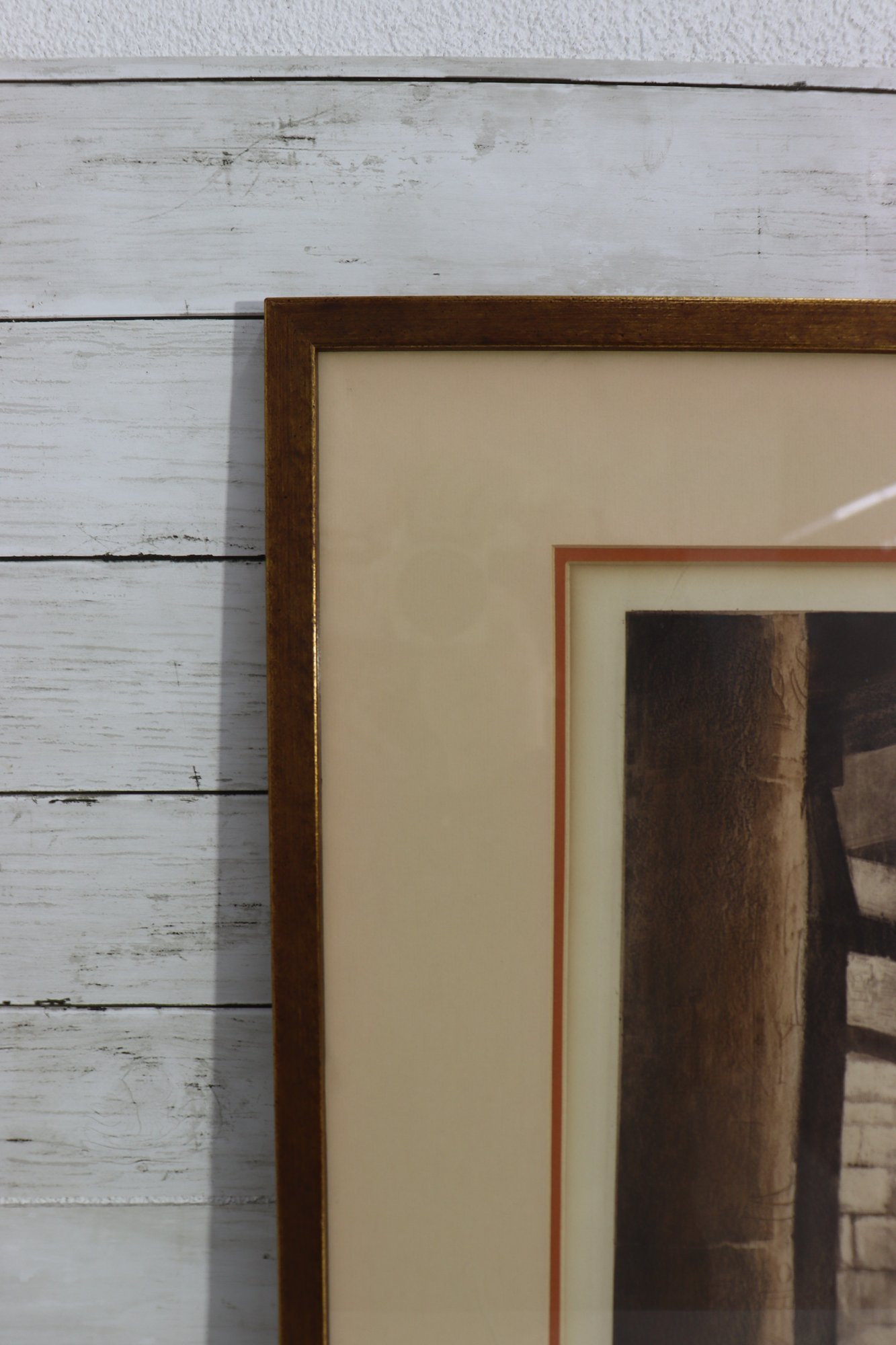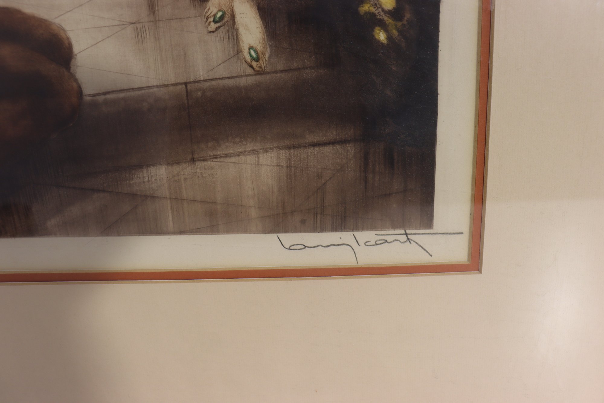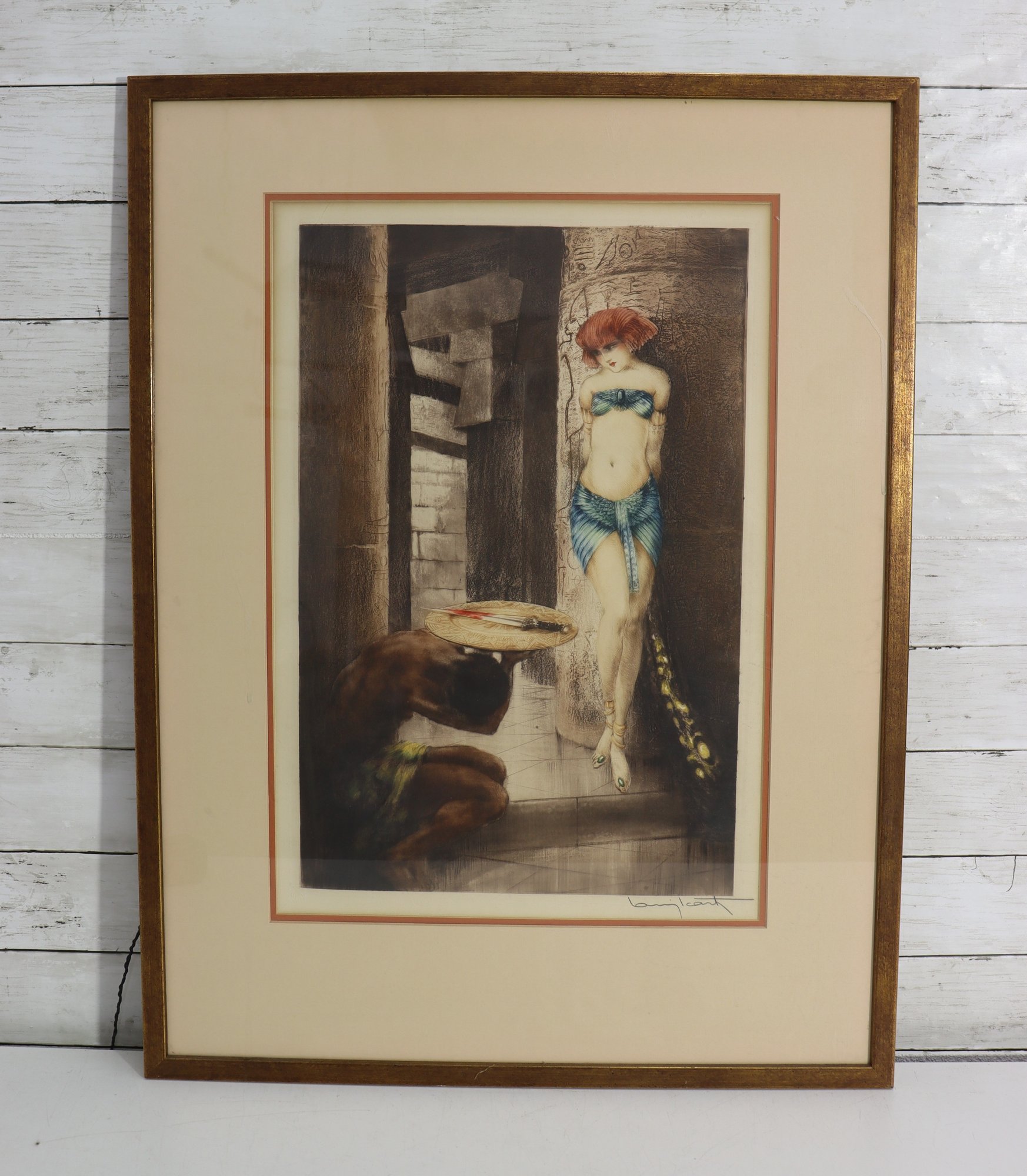 The artwork appears to be signed in the lower margin (see close-up photos). It is presented in a wood frame with matting, giving it a refined, gallery-style appearance.