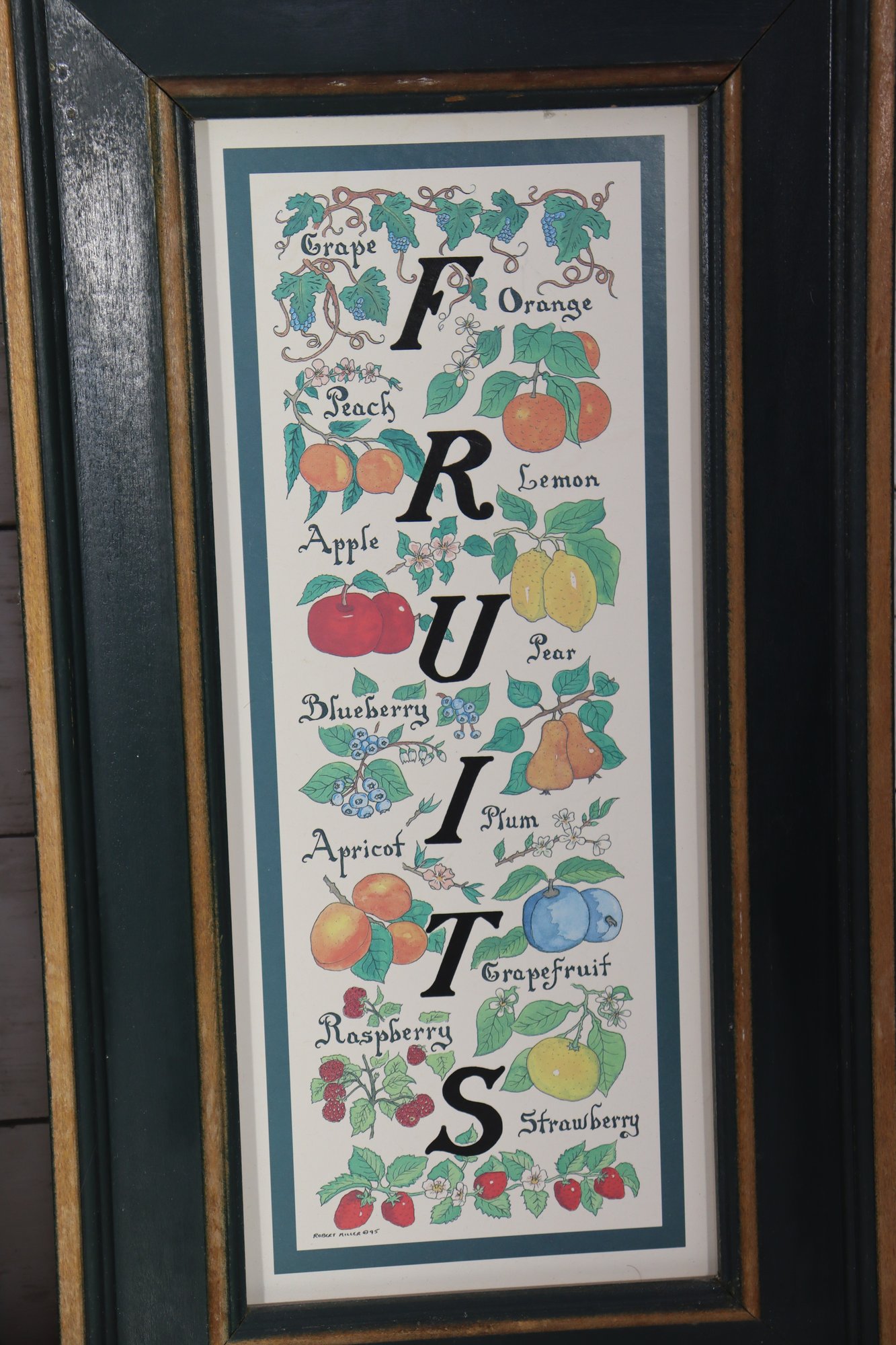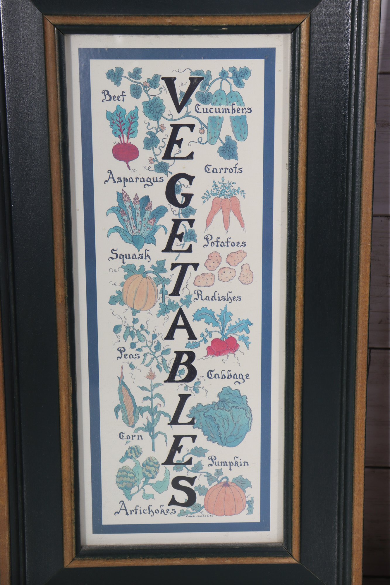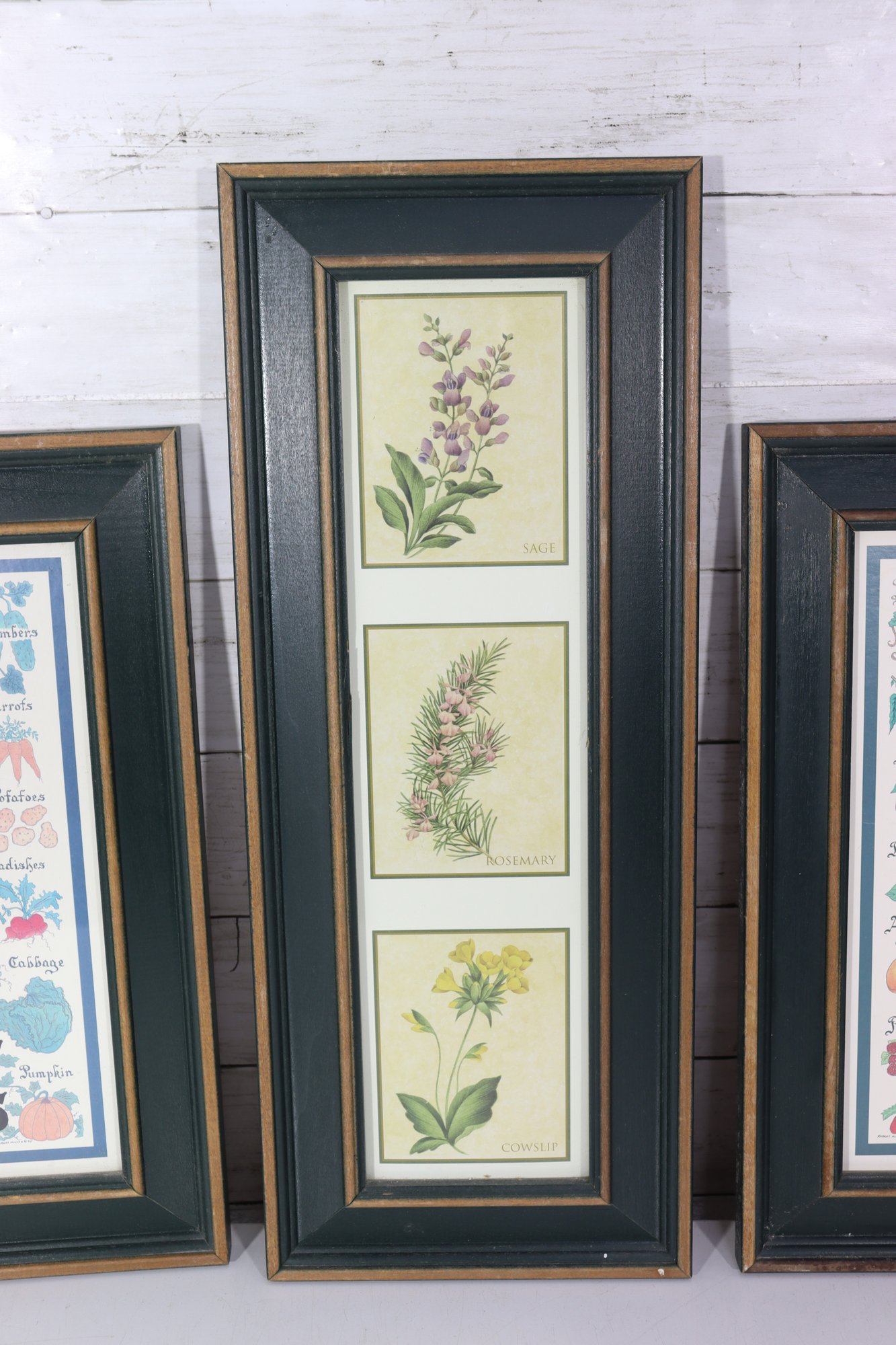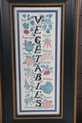set of three framed kitchen-themed wall art prints, featuring colorful Vegetables, Fruits, and botanical illustrations. This attractive grouping is ideal for kitchens, dining areas, breakfast nooks, or farmhouse-style interiors.