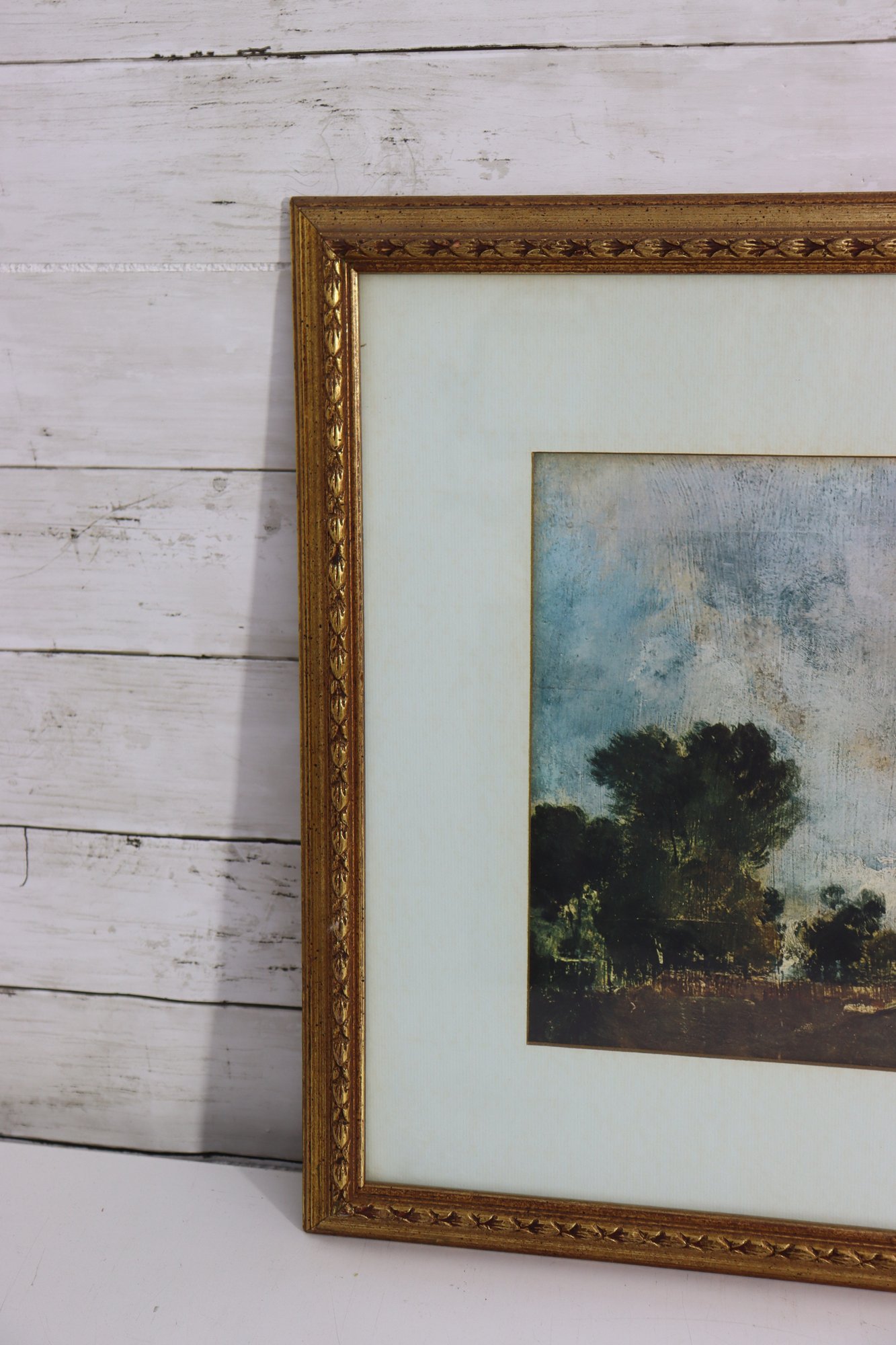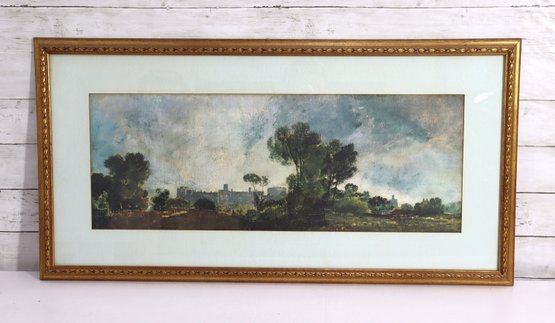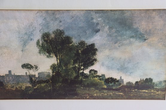 Elegant framed panoramic landscape print depicting a tranquil countryside with lush trees and a distant estate or castle beneath a softly clouded sky. The scene conveys a classic European pastoral charm reminiscent of 19th-century landscape painting traditions.