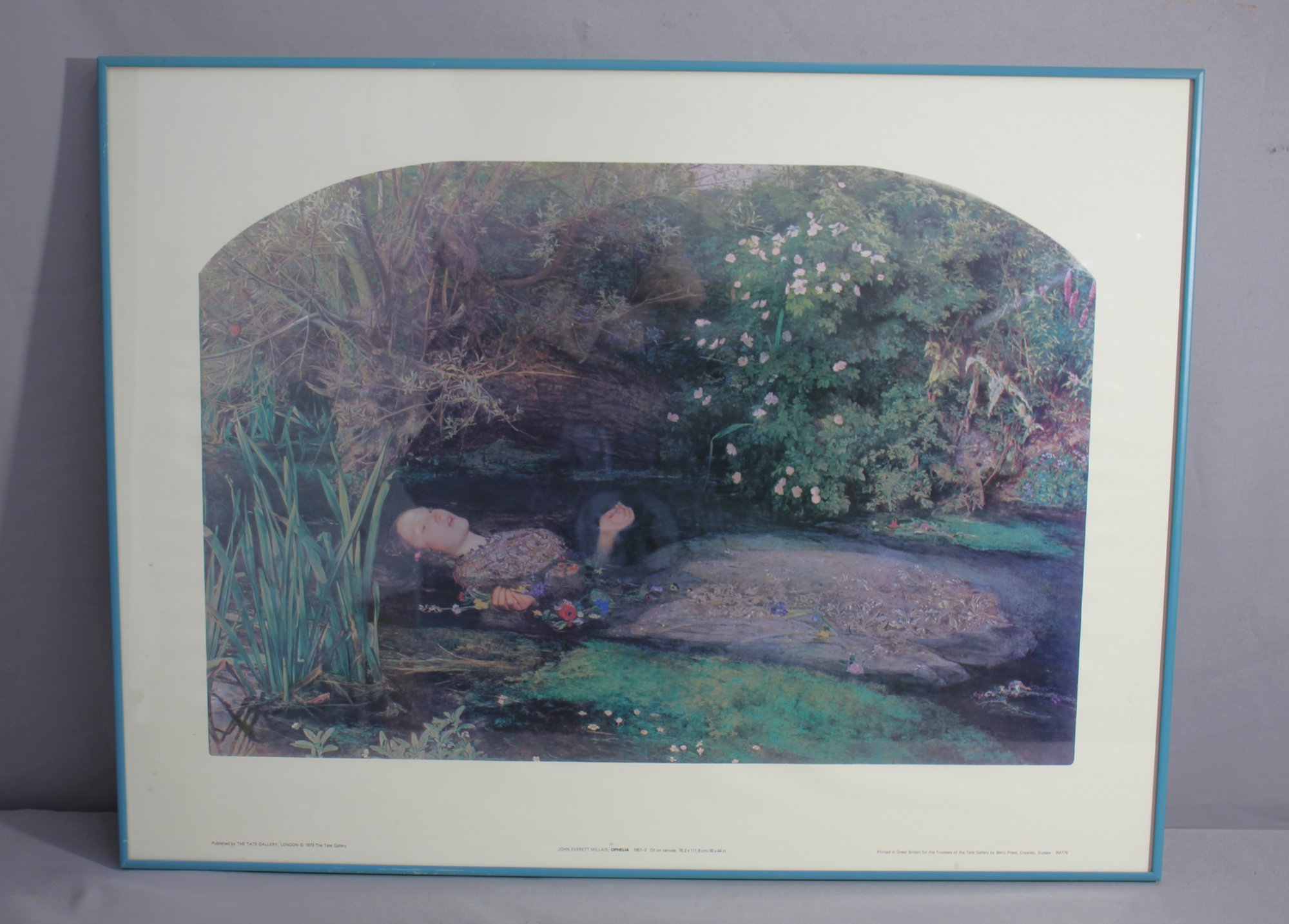 This iconic work, originally painted in 1851–1852, has been faithfully reproduced and published by the Tate Gallery in 1973. It captures the tragic beauty of Shakespeare's Ophelia, lost in her final moments amidst the natural splendor of a river setting.
