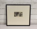 The print is signed in the plate (not hand-signed), as visible in the image, and is presented in a simple black frame with wide matting. The framed piece measures approximately 13 inches x 14.5 inches overall.
