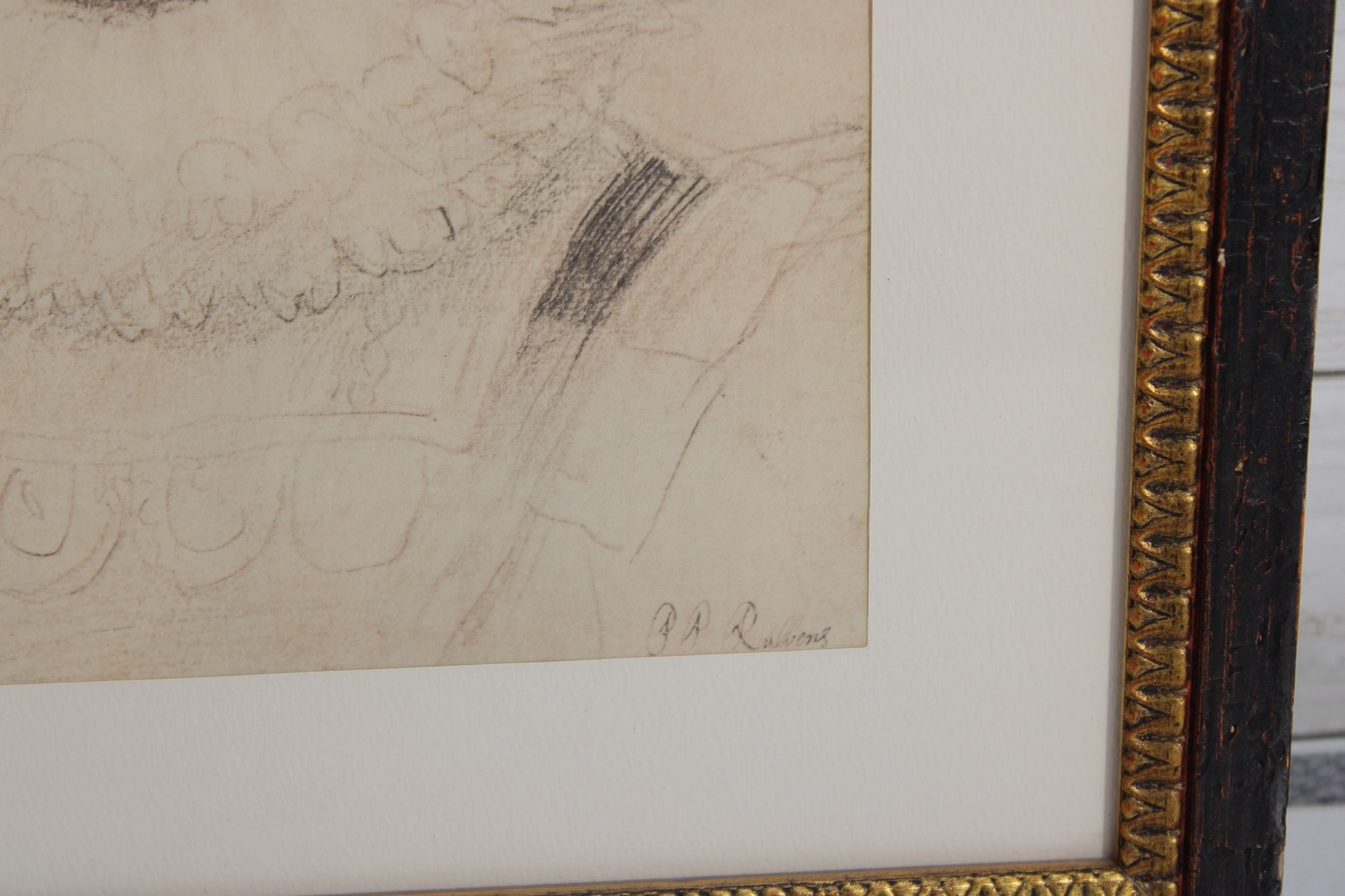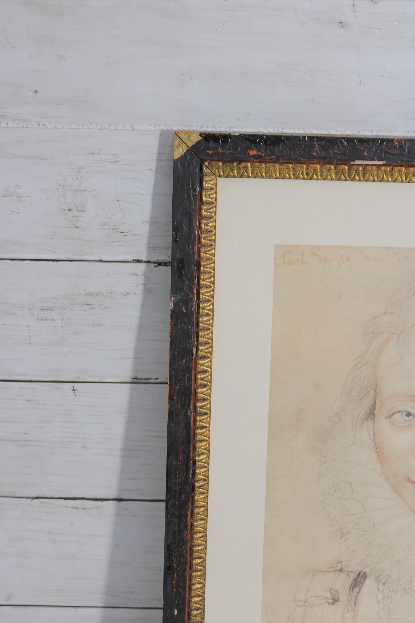 The artwork is beautifully matted and set within a decorative black frame accented with subtle gold detailing, enhancing its traditional charm and making it ready for display in any classic or eclectic interior.
