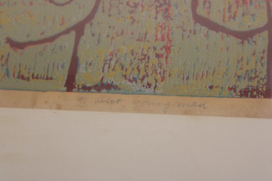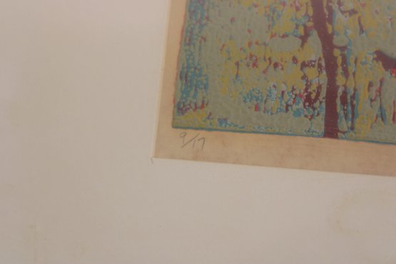 The expressive, almost naive style and gentle color layering make this an appealing piece for collectors of modern or contemporary prints, as well as those looking for unique decorative wall art.