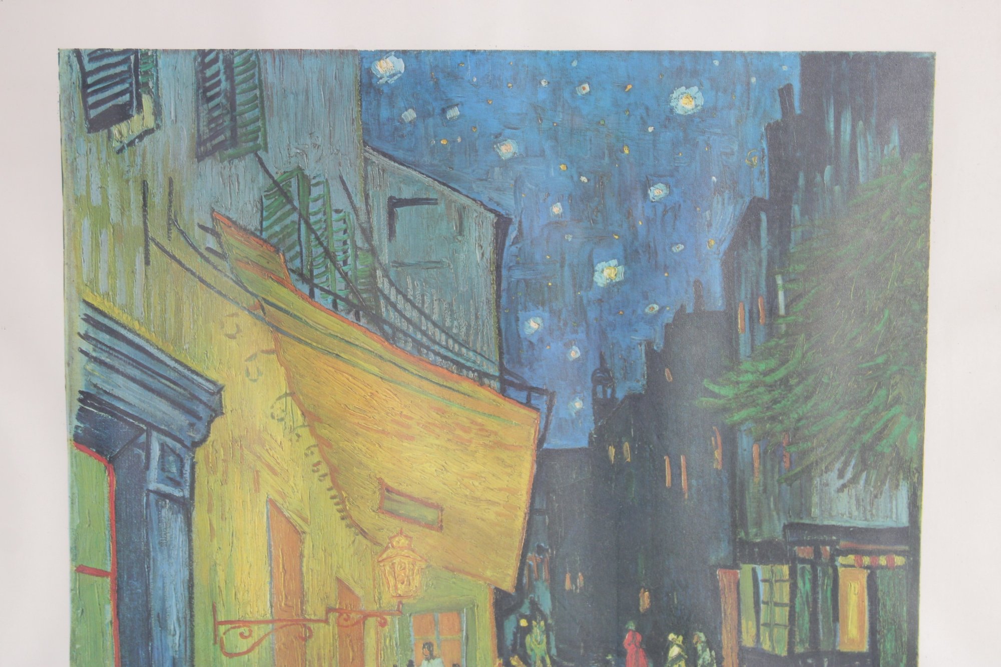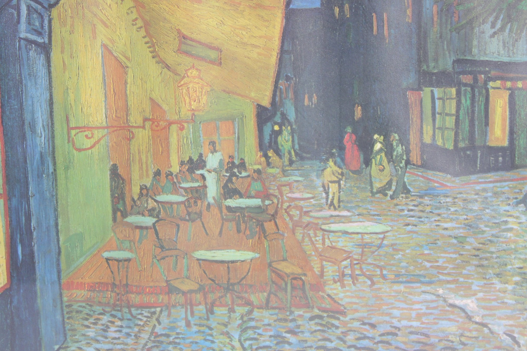 This reproduction captures Van Gogh’s iconic Post-Impressionist style, with expressive brushwork, vibrant color contrasts, and the famous glowing café terrace that draws the viewer into the charming nighttime street scene.