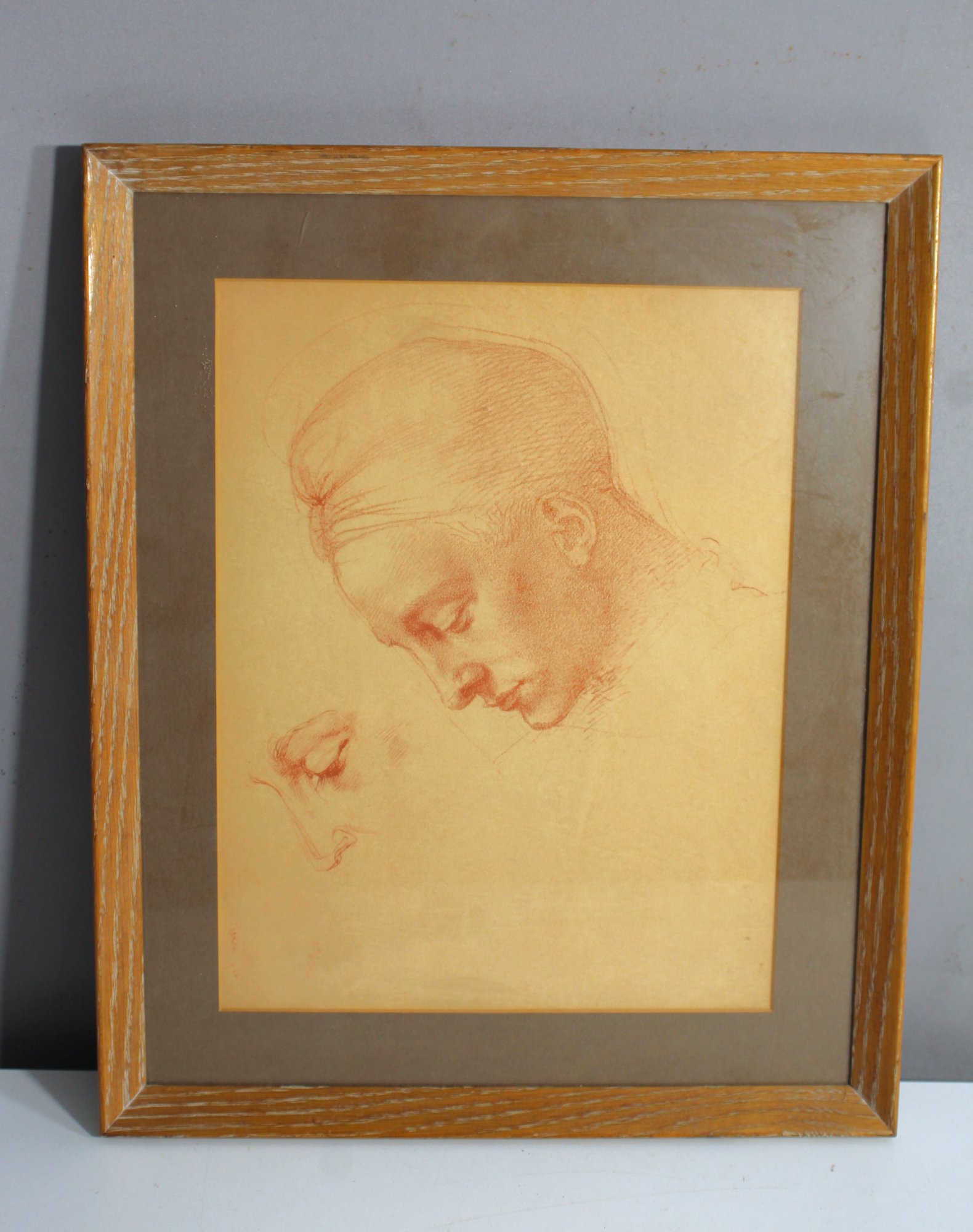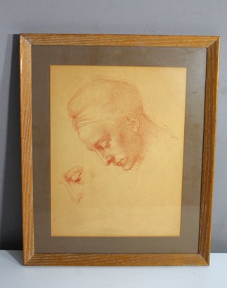 This framed artwork is a delicate red chalk drawing of a profile, reminiscent of classical figure studies. The artwork displays an elegant attention to detail in the rendering of the head, evoking the style of Renaissance or academic sketches. The subtle shading and soft lines create a contemplative mood, showcasing the skill of the artist in capturing the human form with simplicity and grace.