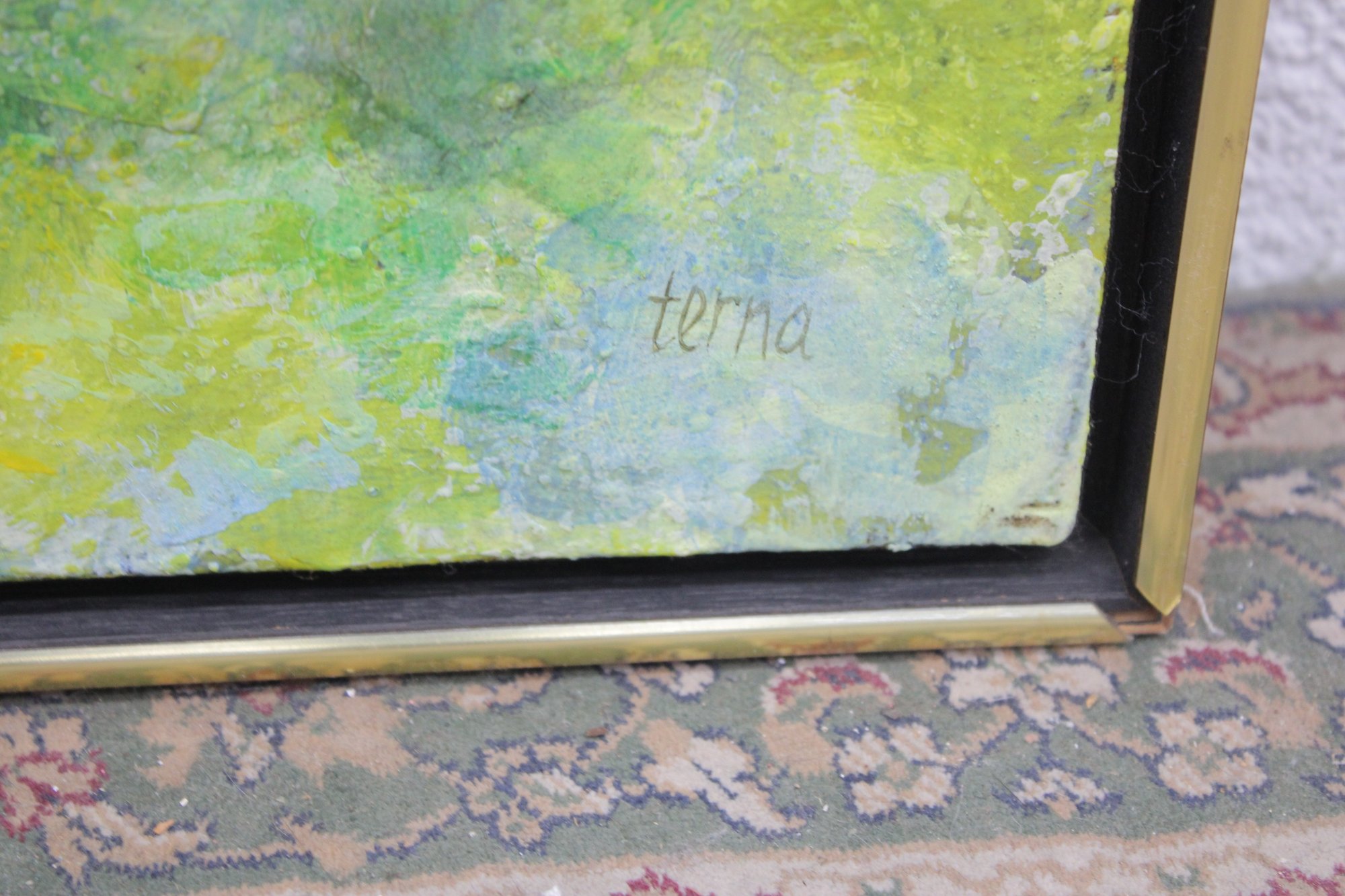 Signed “Terna” within the composition and titled on the reverse, this piece reflects the artist’s distinctive approach to color and landscape interpretation.