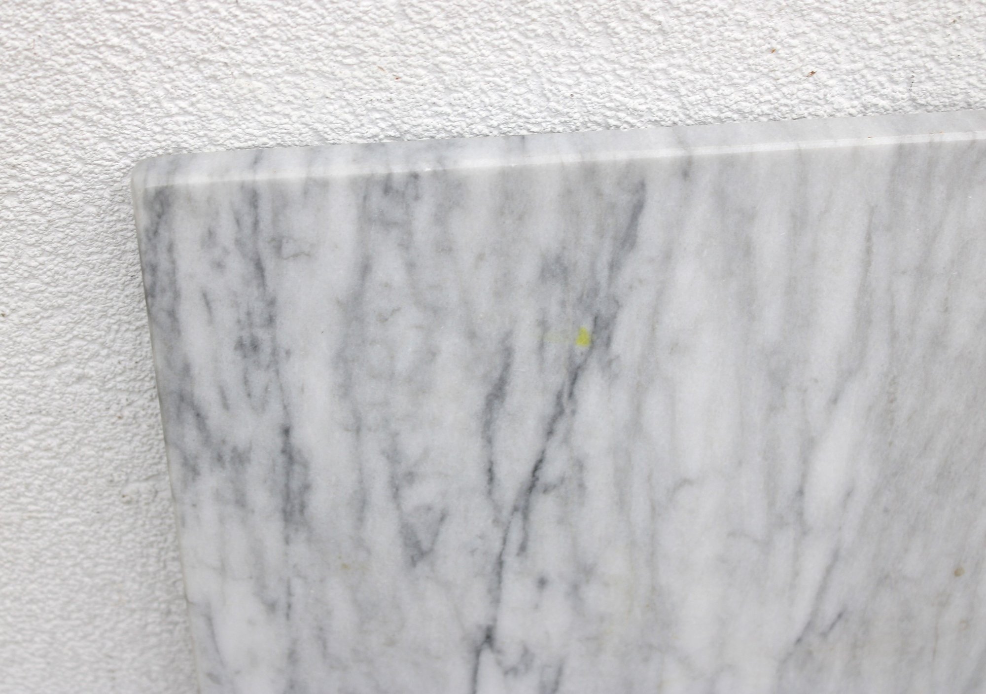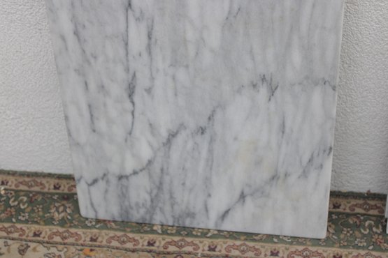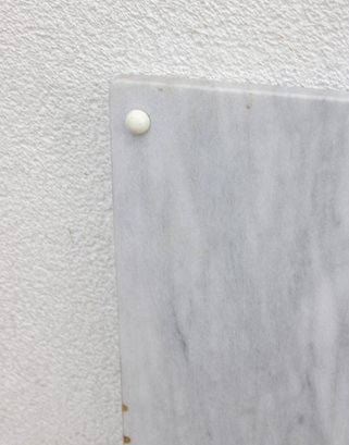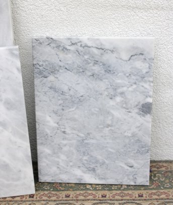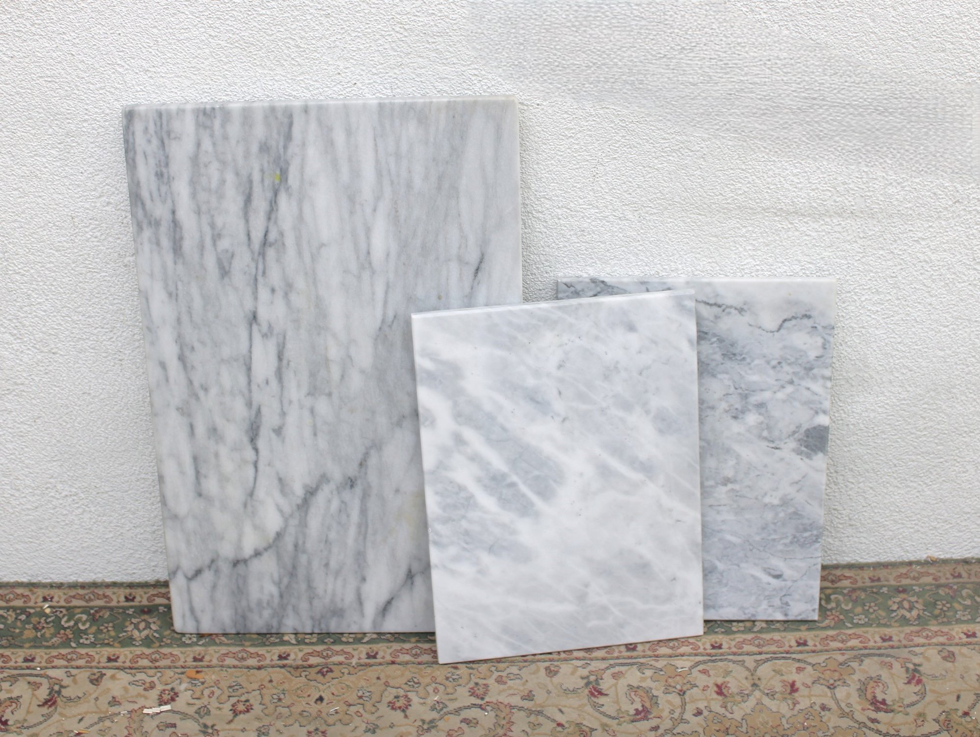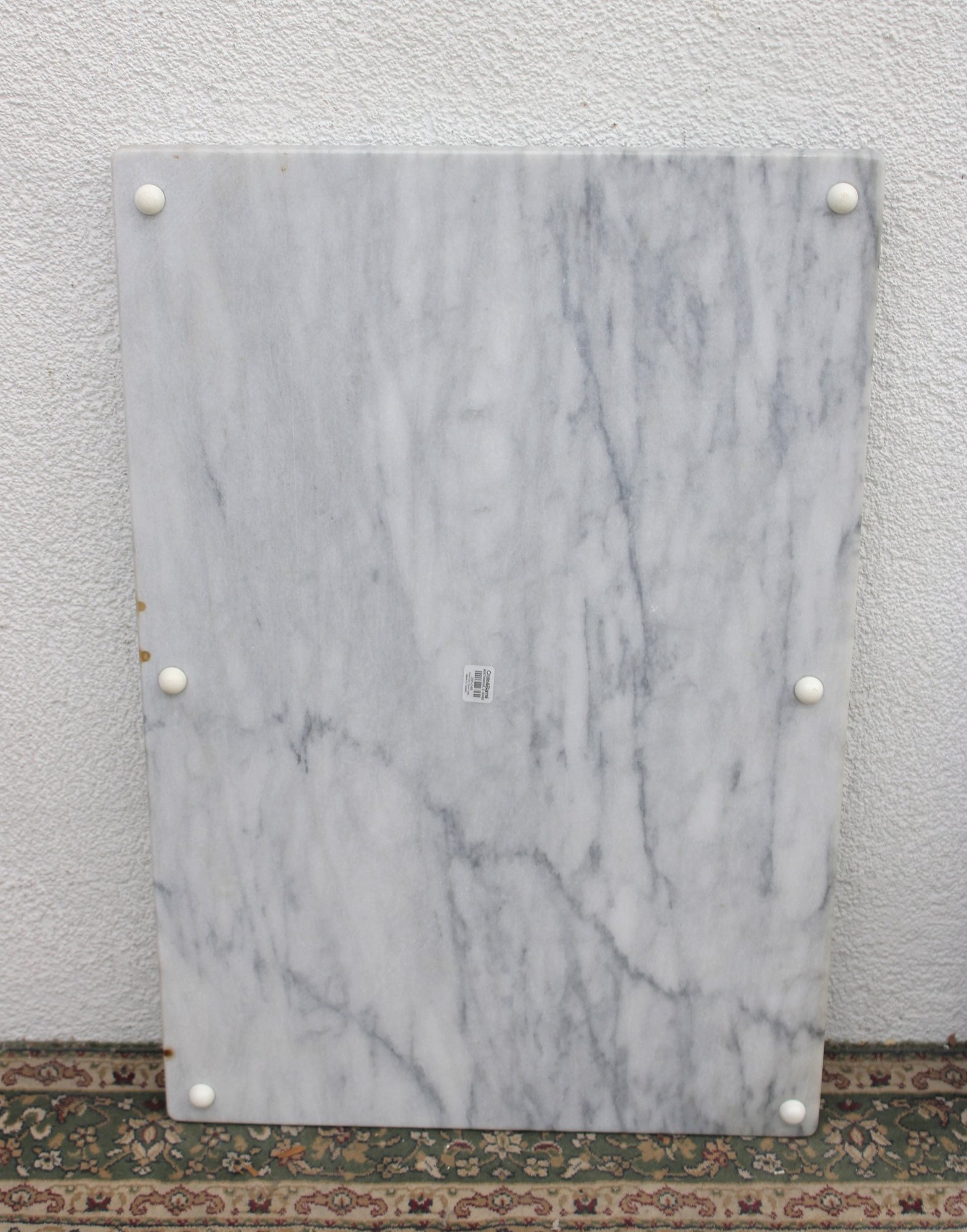These pieces are ideal for serving cheese, charcuterie, desserts, appetizers, or for use as stylish kitchen and countertop décor. The smaller boards have protective feet on the underside, and one retains its original Crate & Barrel label. The natural marble variation gives each piece a unique appearance.
