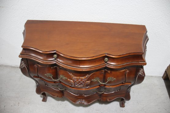 Perfect for use as a hallway console, bedroom dresser, or accent piece, this bombe chest blends French country charm with functional elegance.