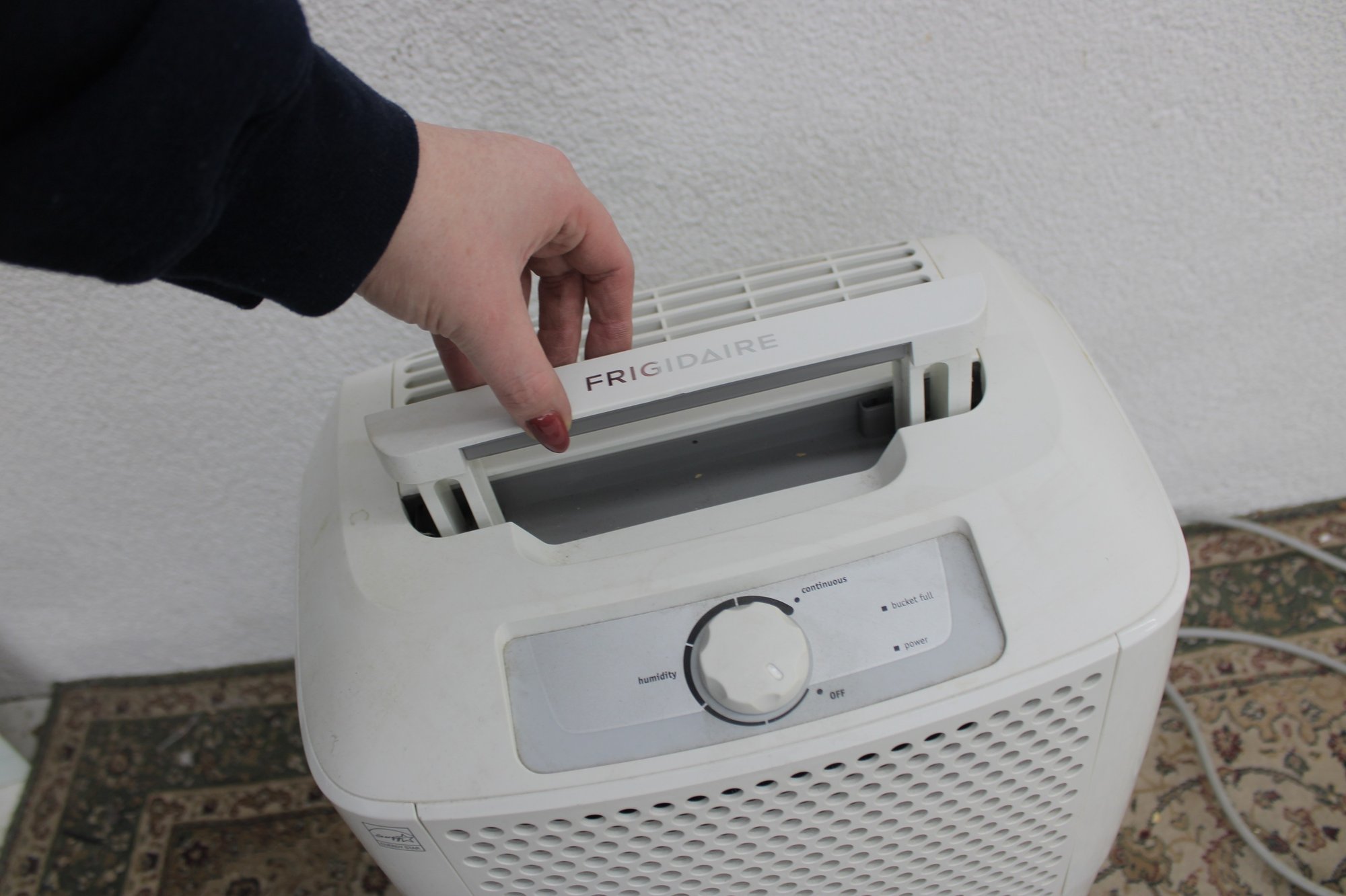 Reliable Frigidaire portable dehumidifier designed to help reduce excess moisture and improve air quality in your home. Featuring a compact design with an easy-carry handle, this unit is ideal for bedrooms, basements, offices, or smaller living spaces.
