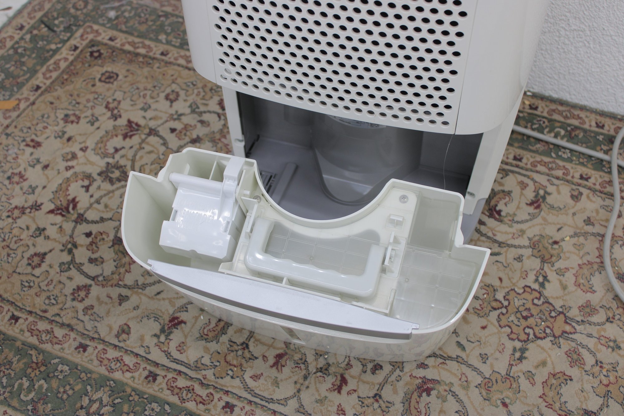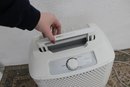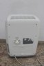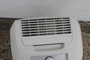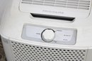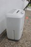 Standing approximately 20" high, the dehumidifier includes simple dial controls for adjustable settings and a removable water reservoir for easy maintenance. Its clean white finish blends seamlessly into most interiors while providing practical humidity control.