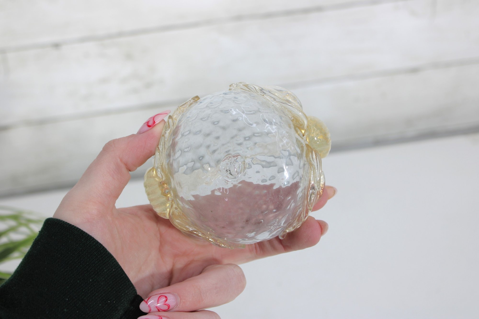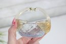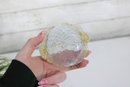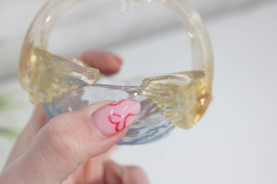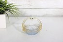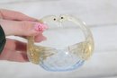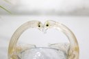 The glass displays subtle color variation with clear, pale amber, and light blue tones, showcasing the fluid movement and organic form characteristic of hand-blown art glass. Perfect as a trinket dish, candy bowl, ring holder, or simply as a decorative display piece.