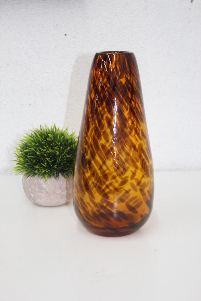 Hand Blown Brown/Amber Tortoise Thick Wall Glass Vase