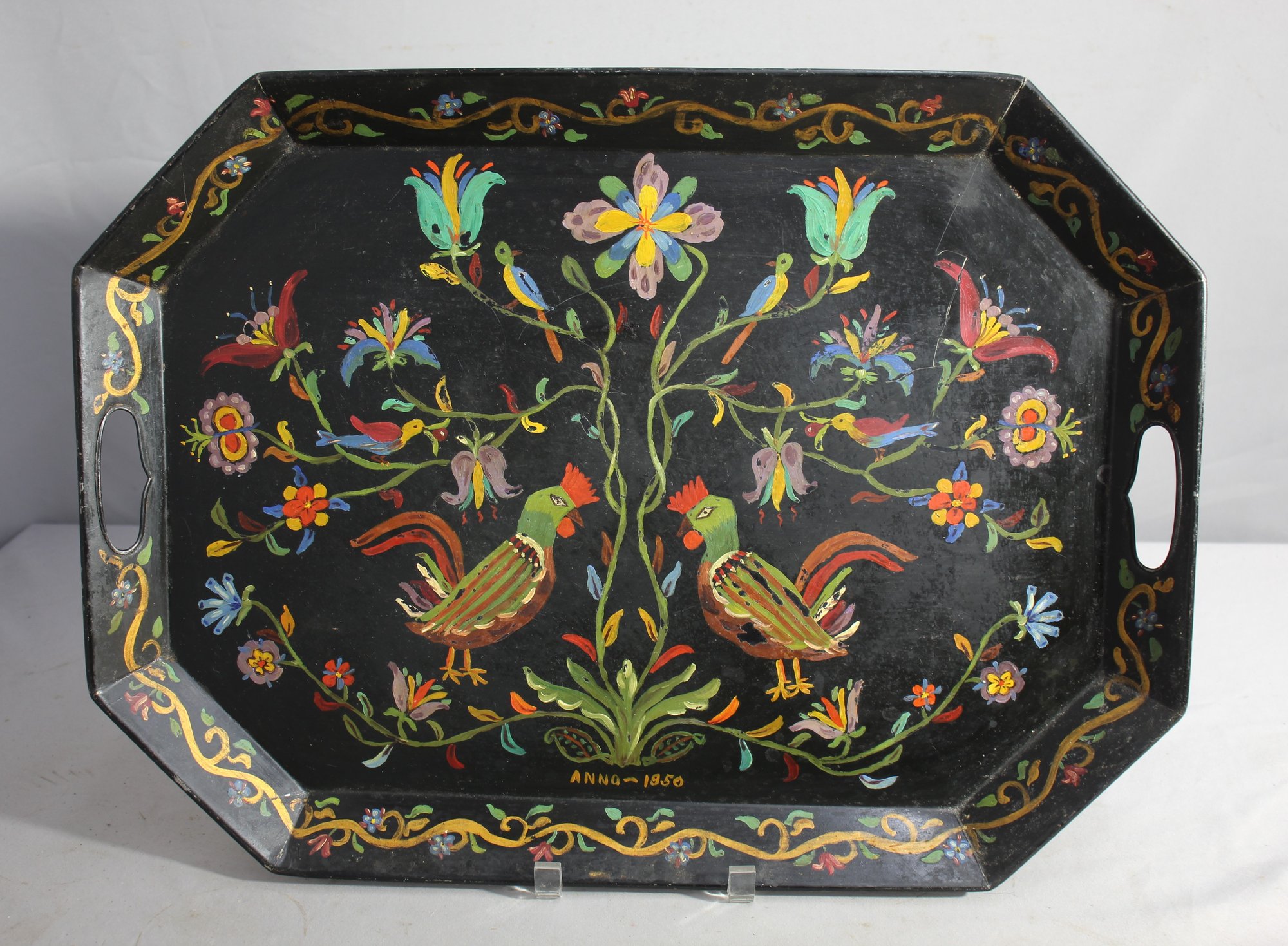 Hand-Painted Antique Serving Tray "Anno 1950" By Lida Bell Clark -16"x 22"