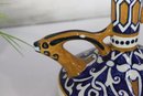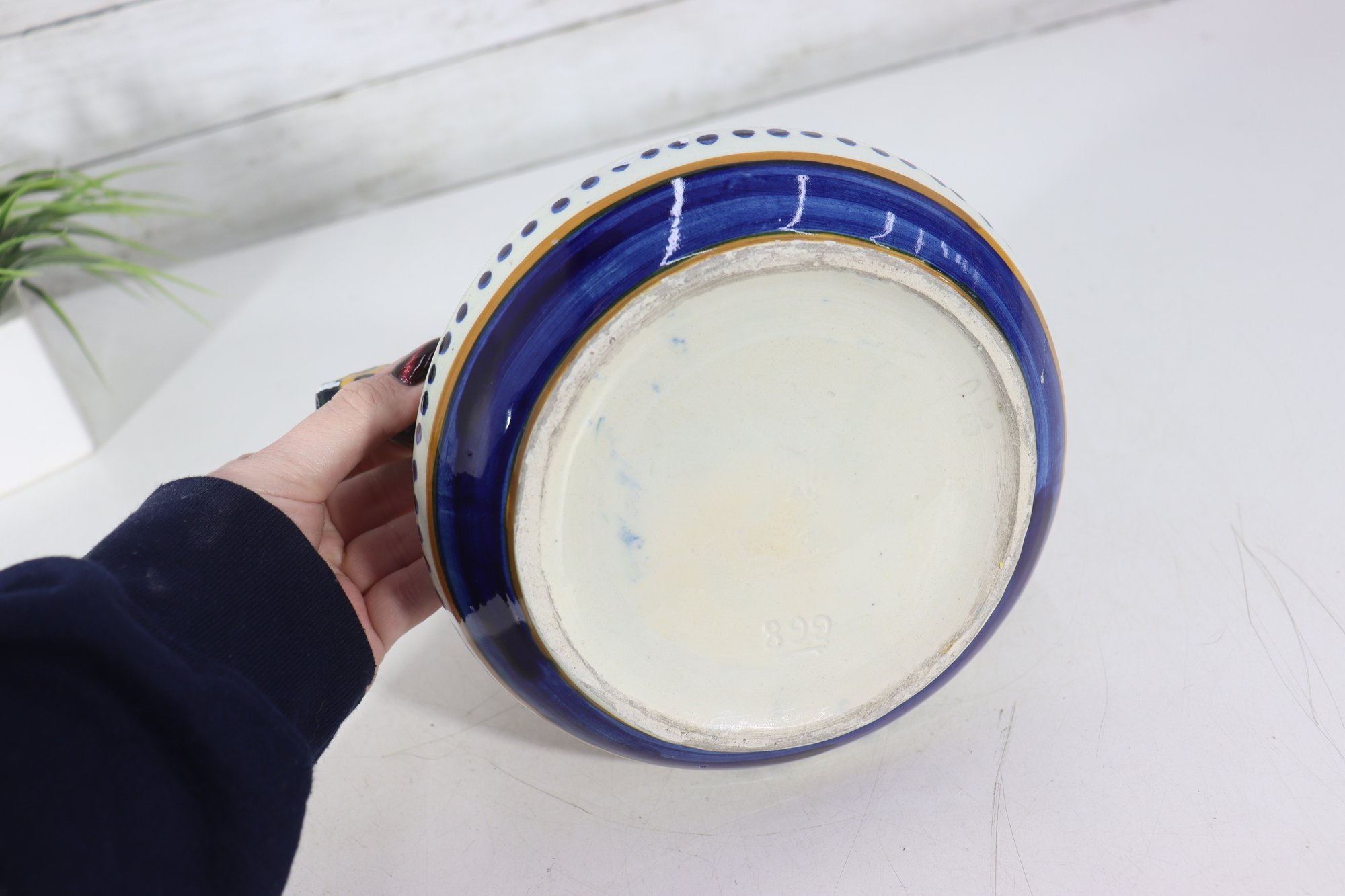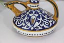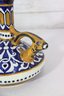 The bold cobalt blue, white, and golden yellow color palette gives this vase strong visual impact and timeless Old World charm. The detailed hand-painted design and glossy glaze make it an excellent decorative accent for shelves, mantels, or tabletop display.