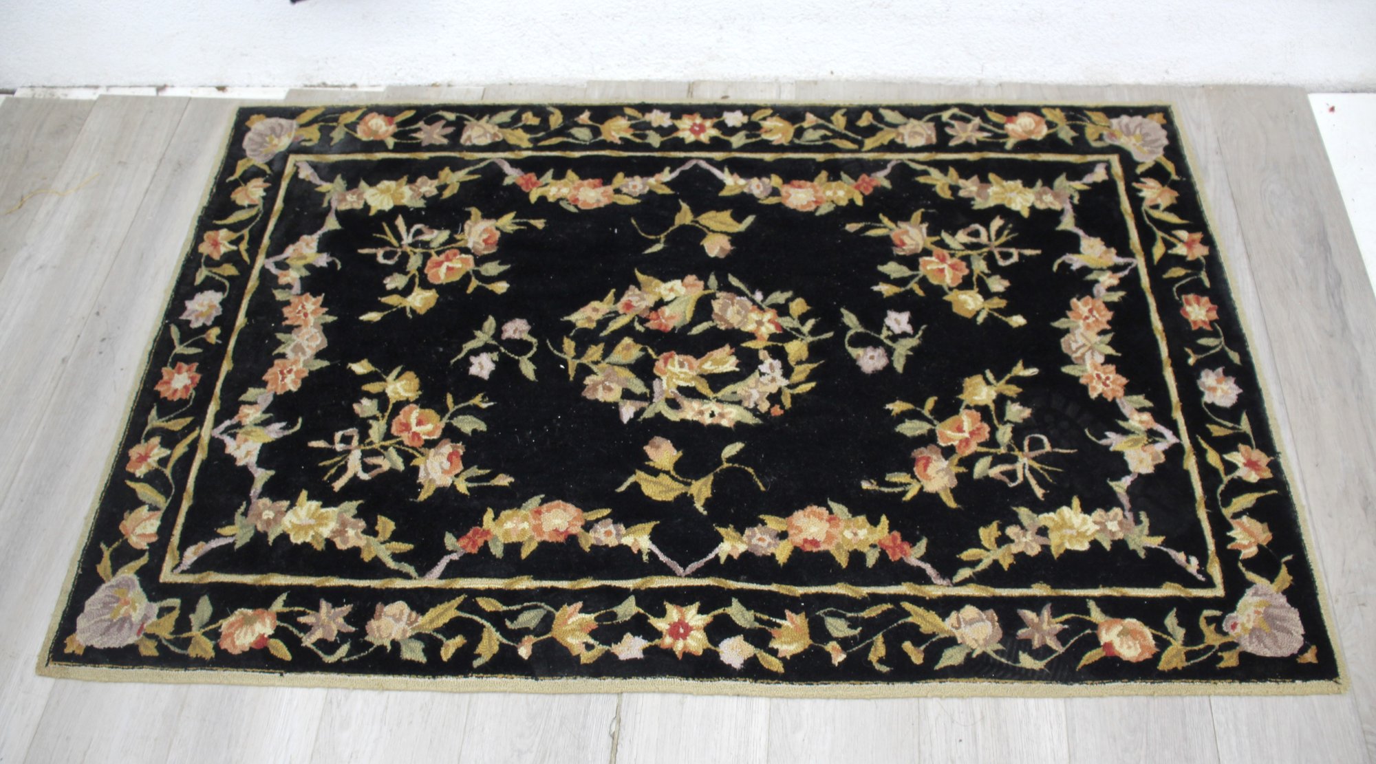 Hand-Tufted Wool Rug In Black With Floral Design, 3'6" X 5'6"