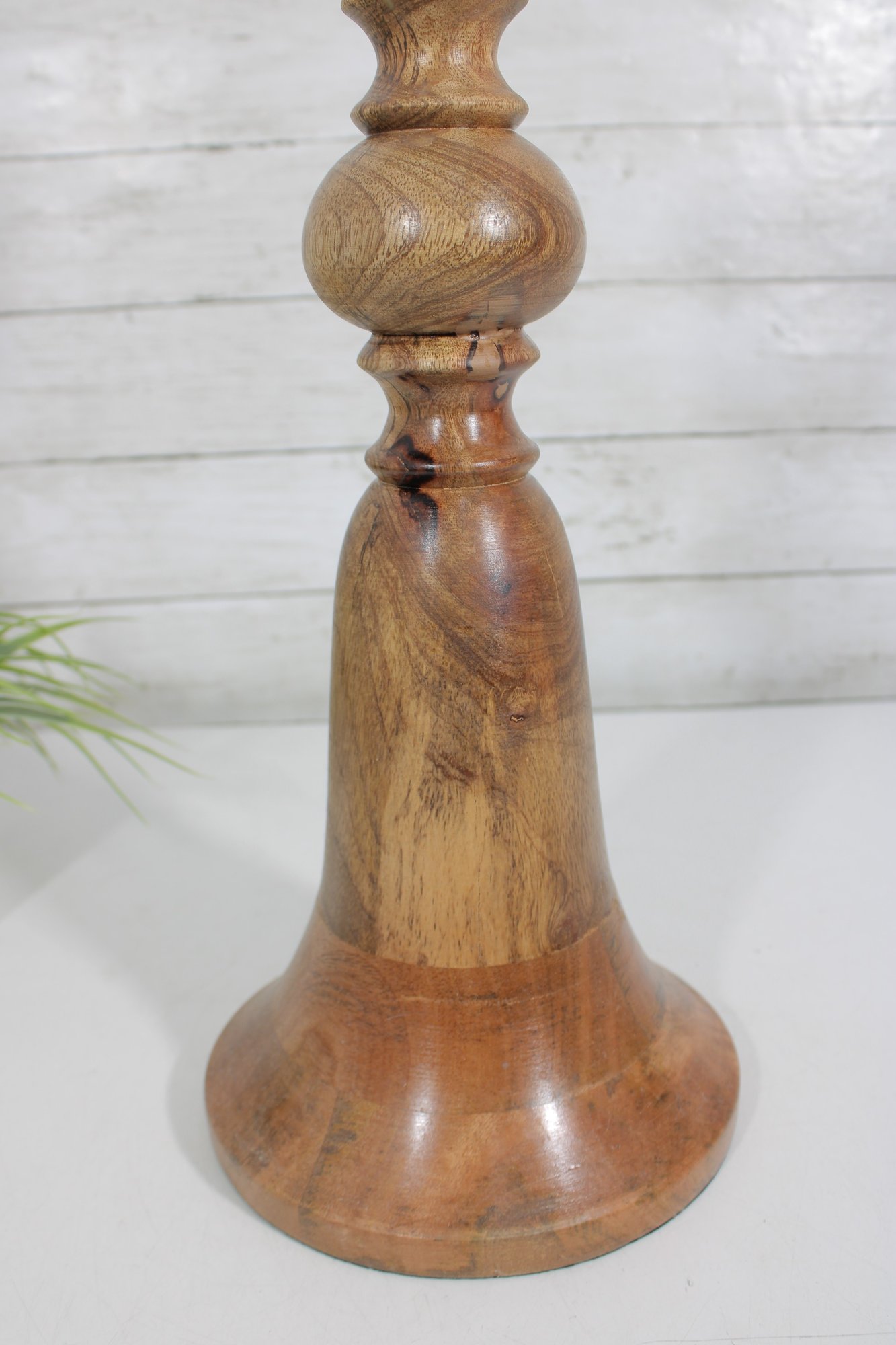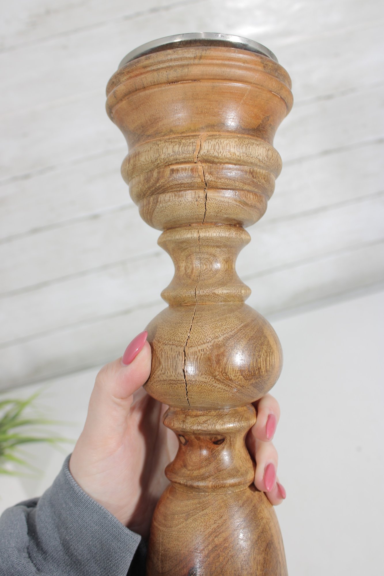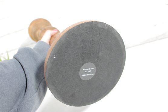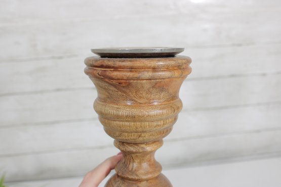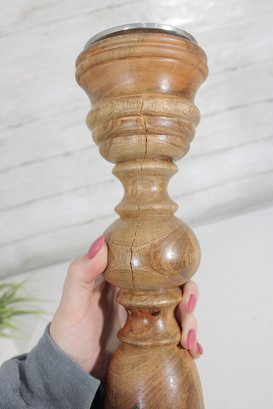 Hand-Turned Wooden Candlestick Holder W/ Metal Insert Rustic Decorative Accent 17.5"