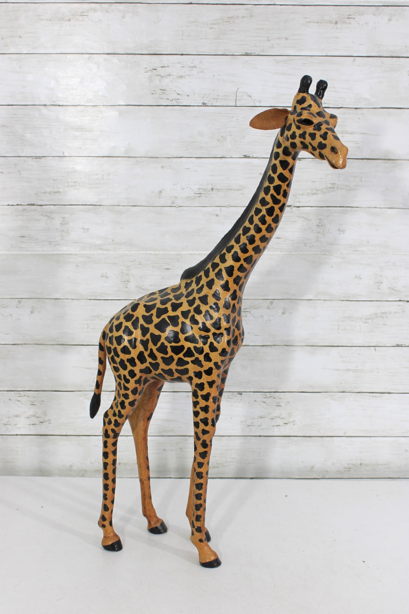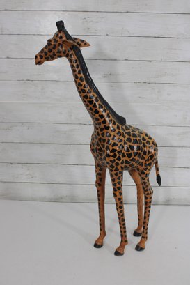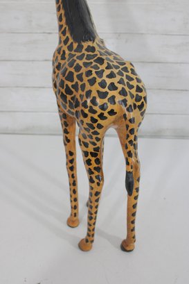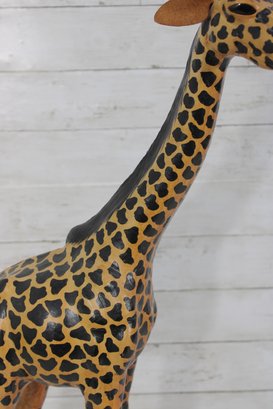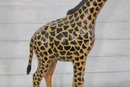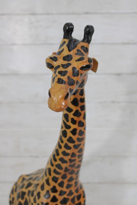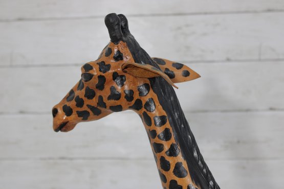 Charming handcrafted giraffe sculpture standing 27.5 inches tall, featuring bold patterning and a graceful, elongated form. This piece brings instant personality and safari-inspired style to any space.