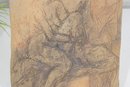 Executed on toned paper, the composition highlights the artist’s use of line and shading to convey depth and emotion. The minimalist style and raw quality give the piece a strong studio or life-drawing character.