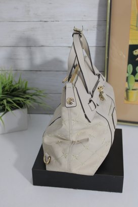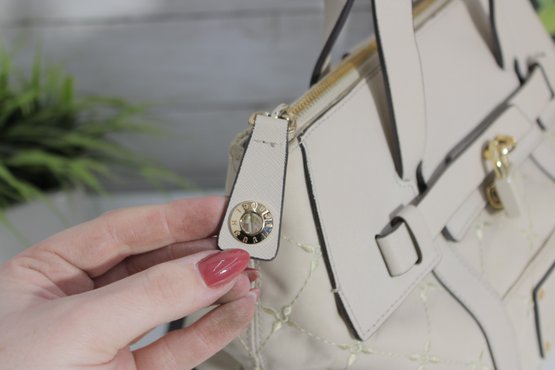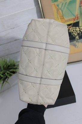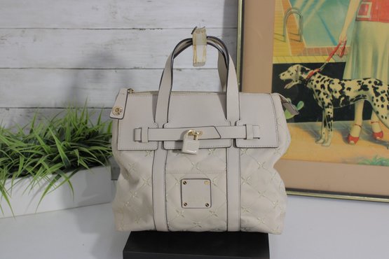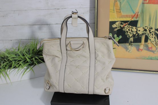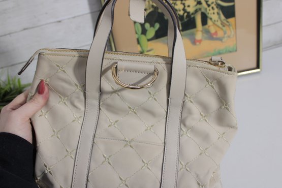 Stylish and versatile Henri Bendel Jetsetter bag crafted in elegant ivory quilted leather with signature gold-tone hardware. This chic designer piece was designed to convert between a satchel, backpack, and crossbody, making it both fashionable and functional.