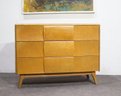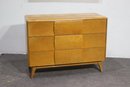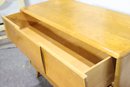mid-century modern elegance to your space with this beautiful vintage 3 long -drawers dresser, featuring curved sculpted drawer fronts and a warm maple wood finish. This timeless piece embodies the clean lines and organic shapes characteristic of mid-century design.