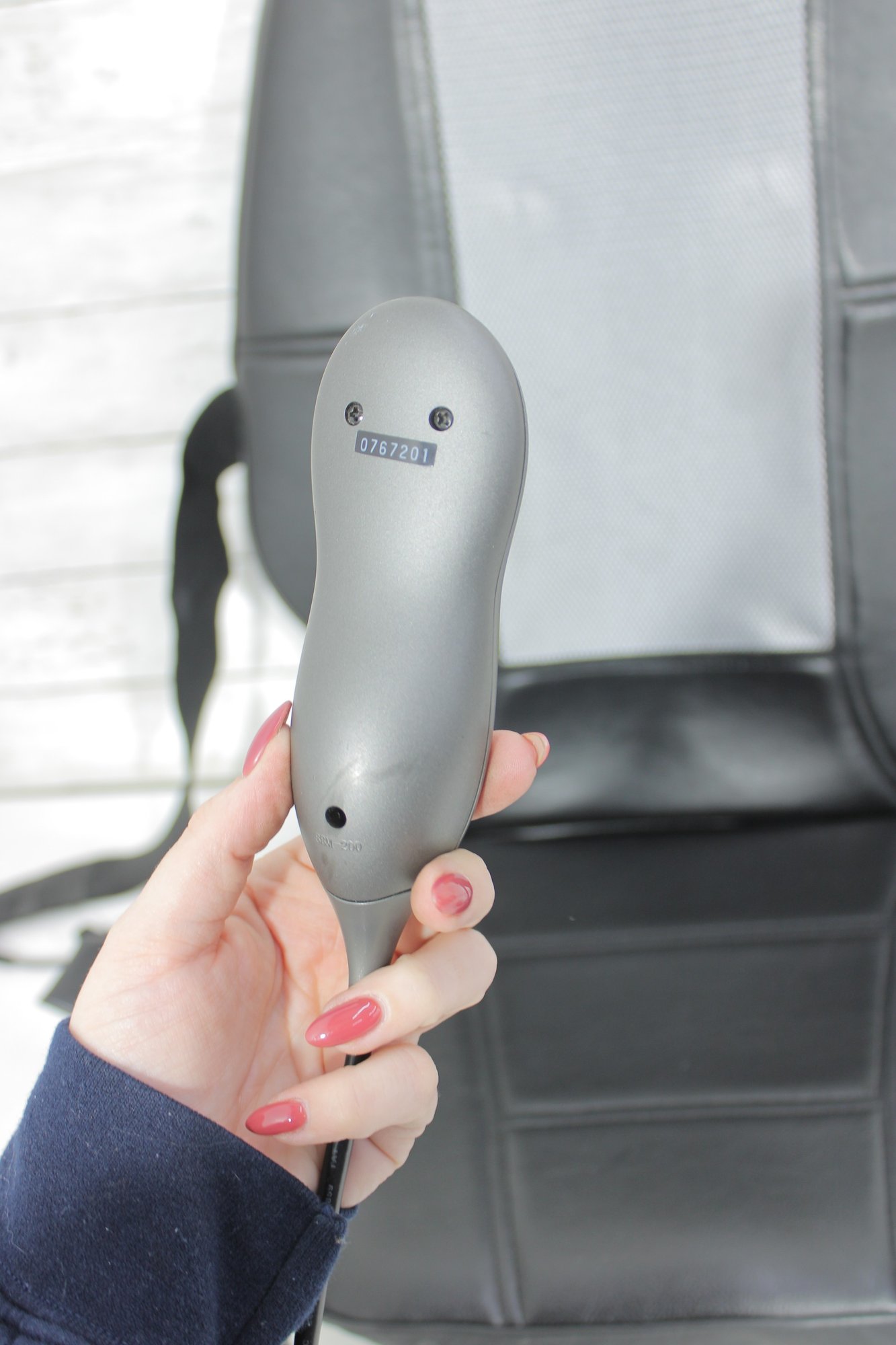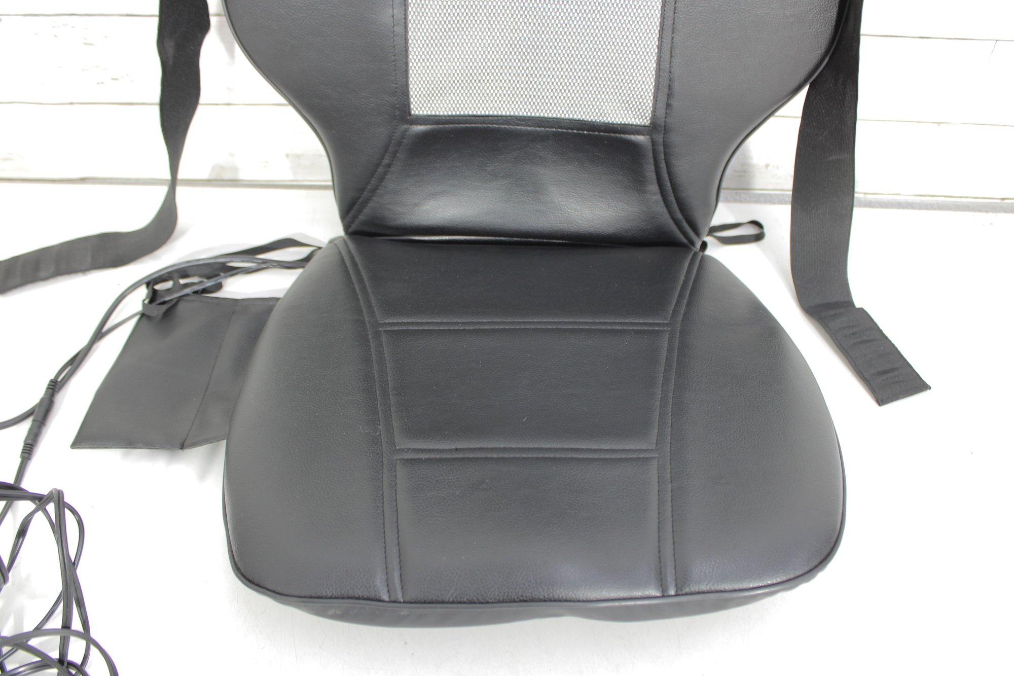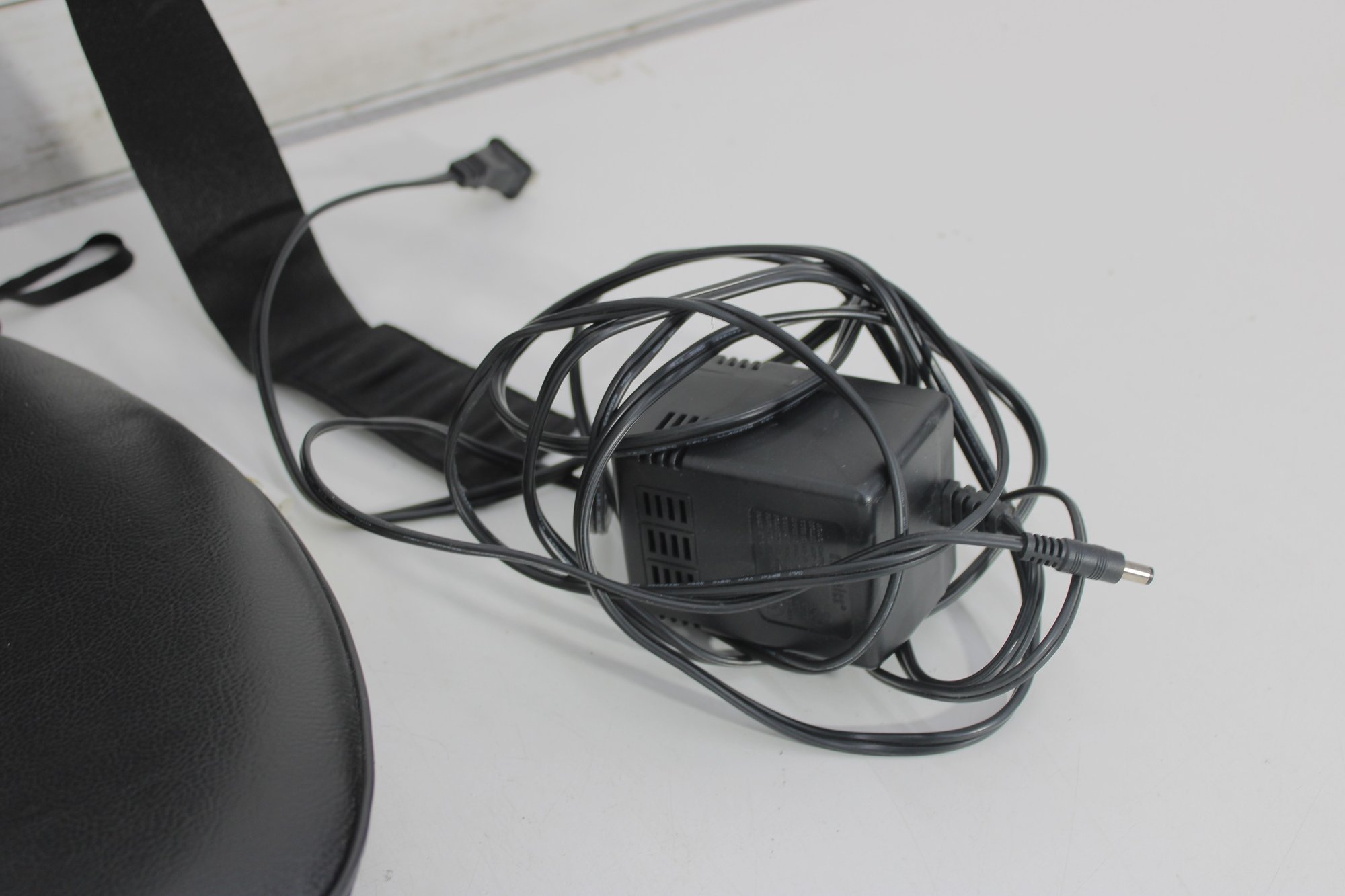 Equipped with a handheld controller, you can customize your massage experience with multiple settings. The unit has been tested and powers on as shown, offering a convenient way to enjoy soothing back relief without leaving your space.