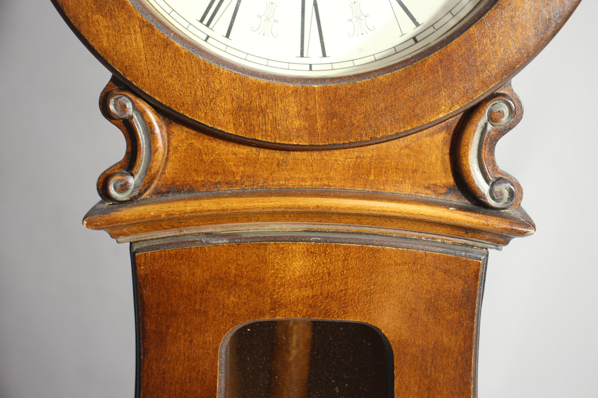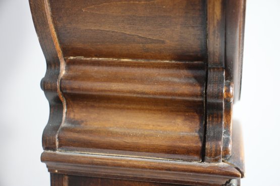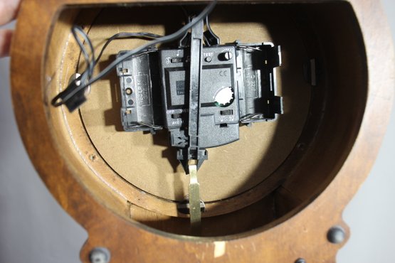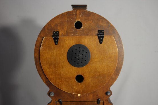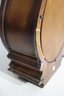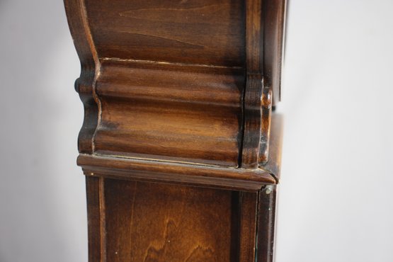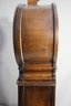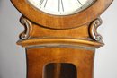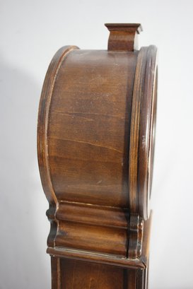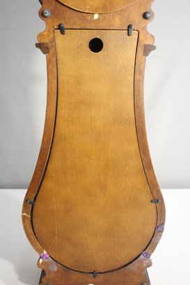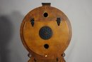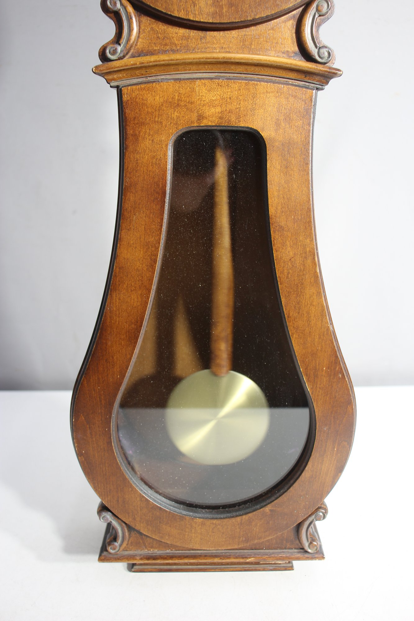 This Howard Miller 80th Anniversary Edition Wall Clock is a beautifully crafted timepiece featuring a classic wooden case with an elegant lyre-shaped design. The clock has a dual chime movement, Roman numeral dial, and a glass front panel showcasing a brass pendulum.
