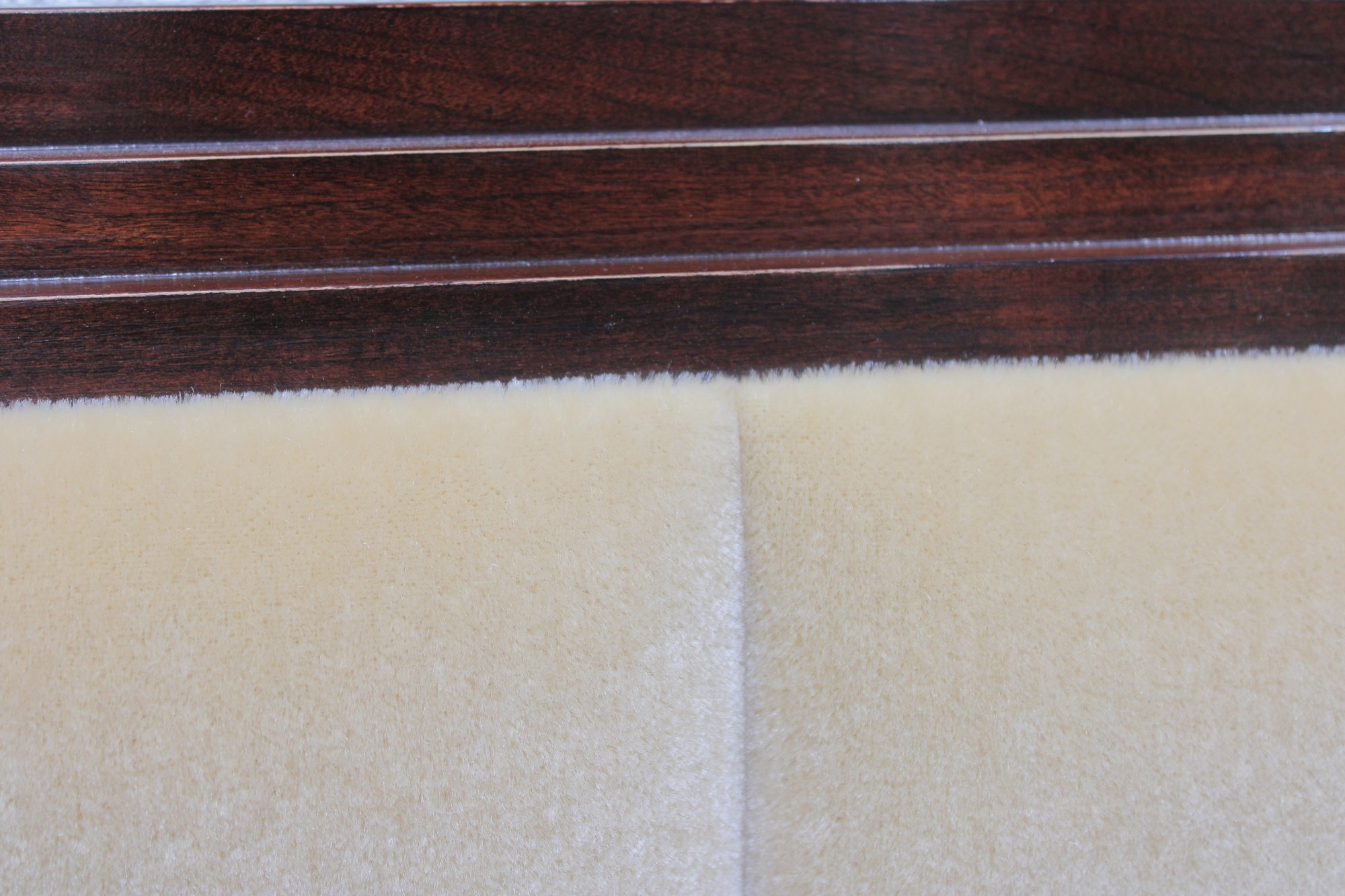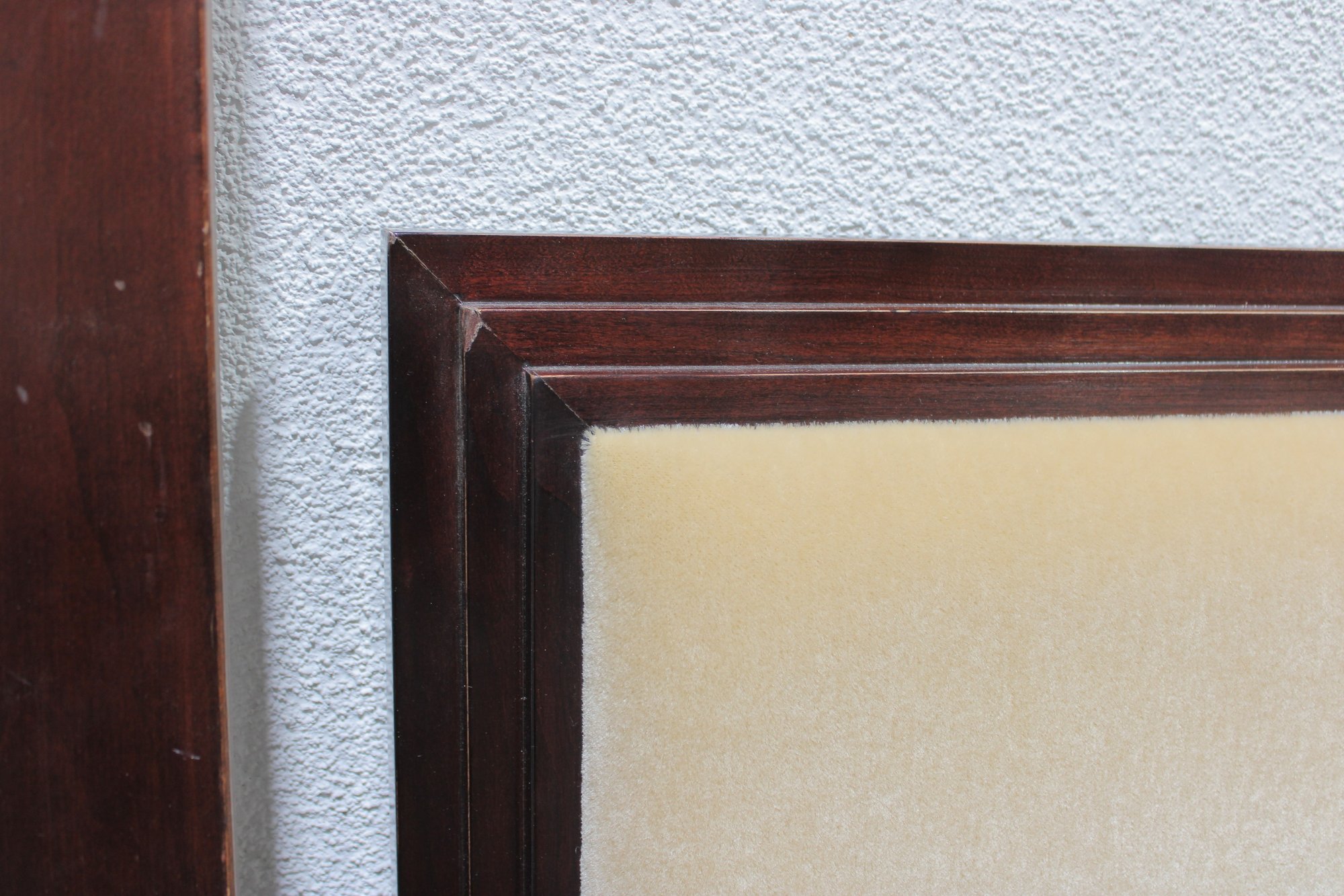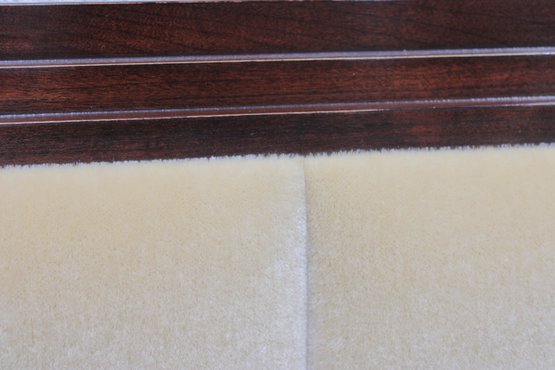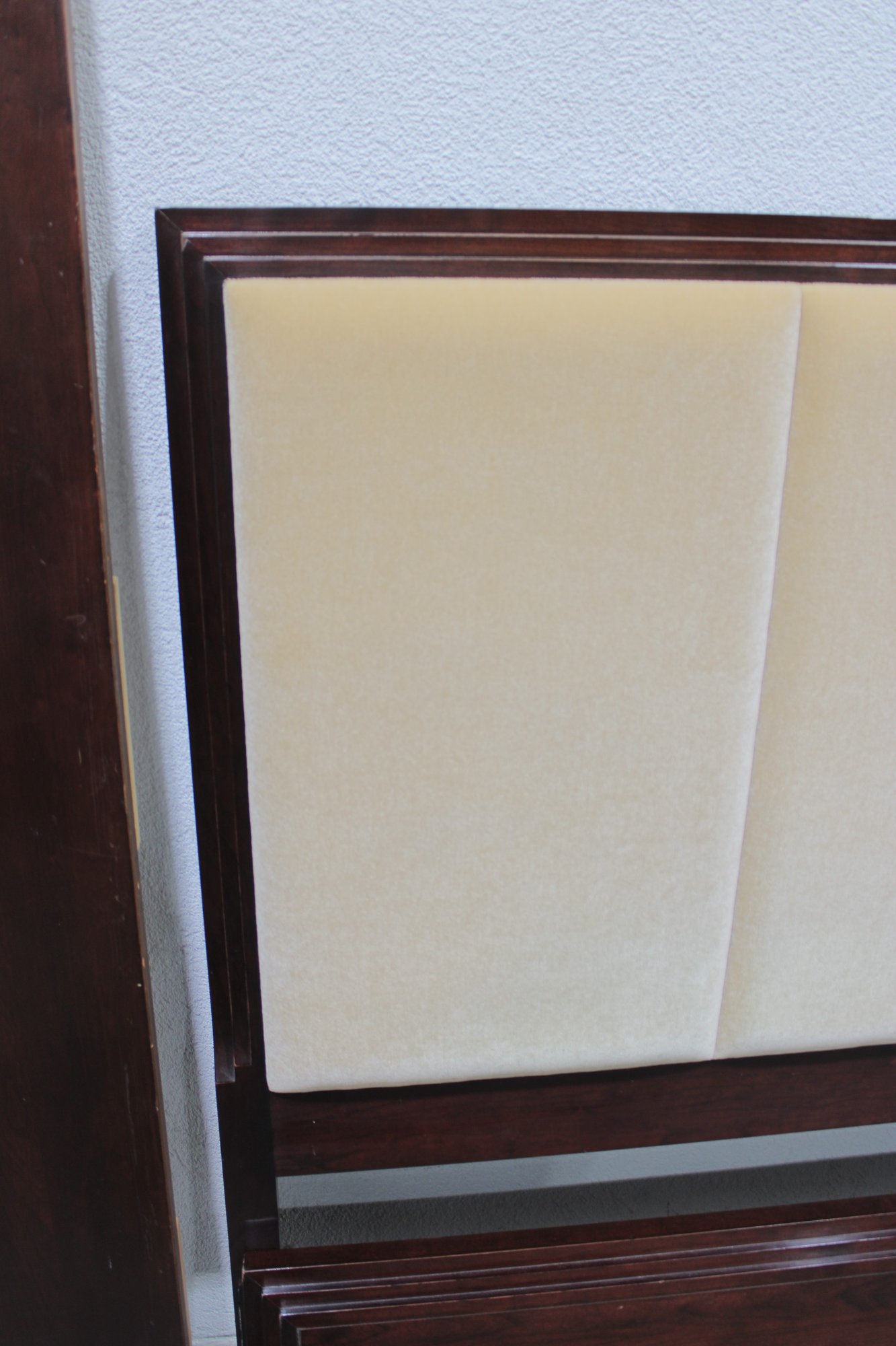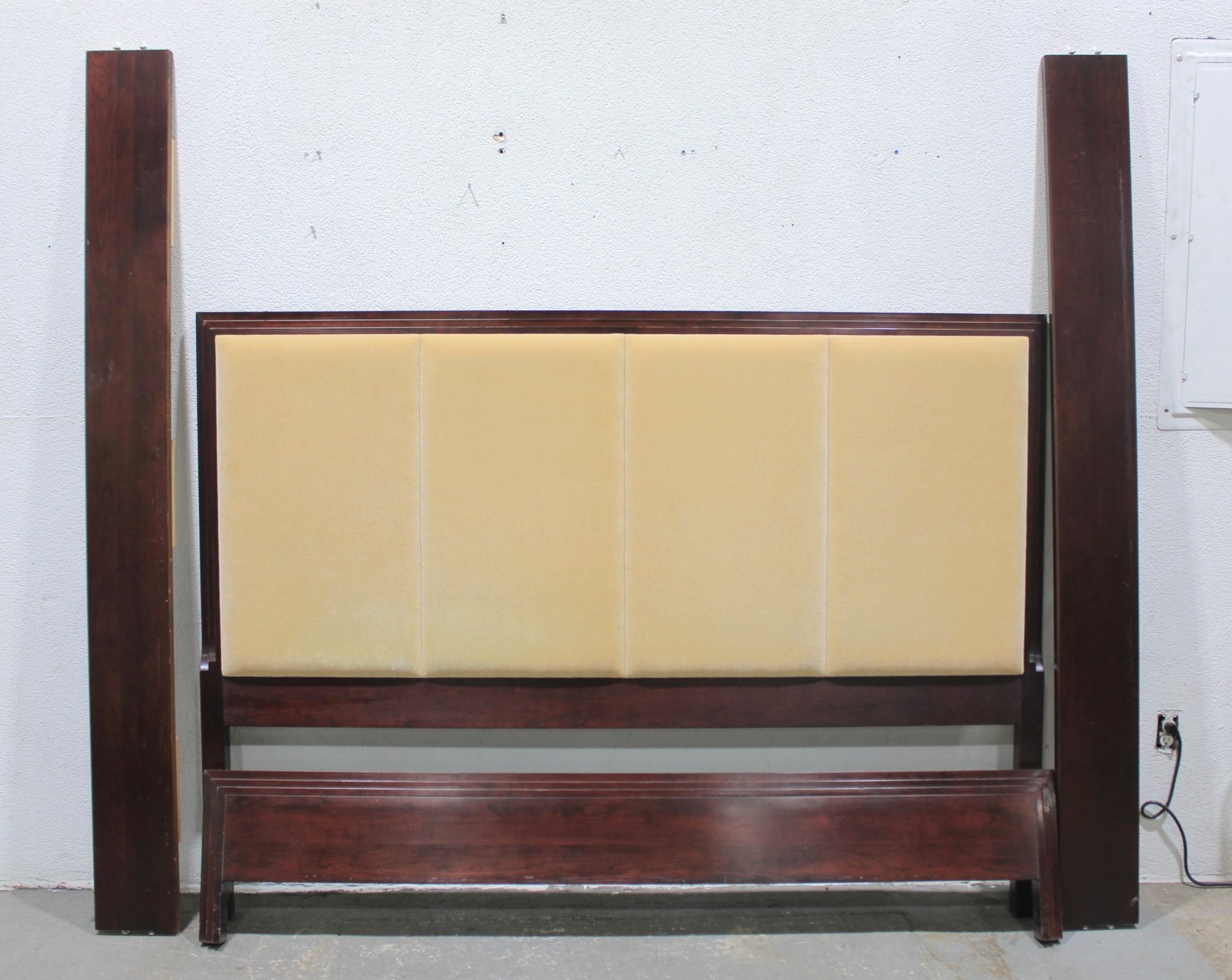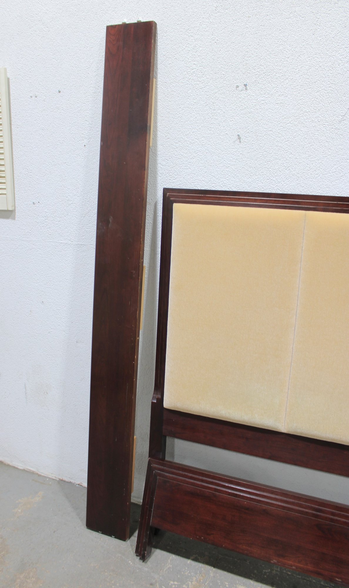 Elegant queen size bed frame by Jade, featuring a rich wood construction and upholstered headboard.