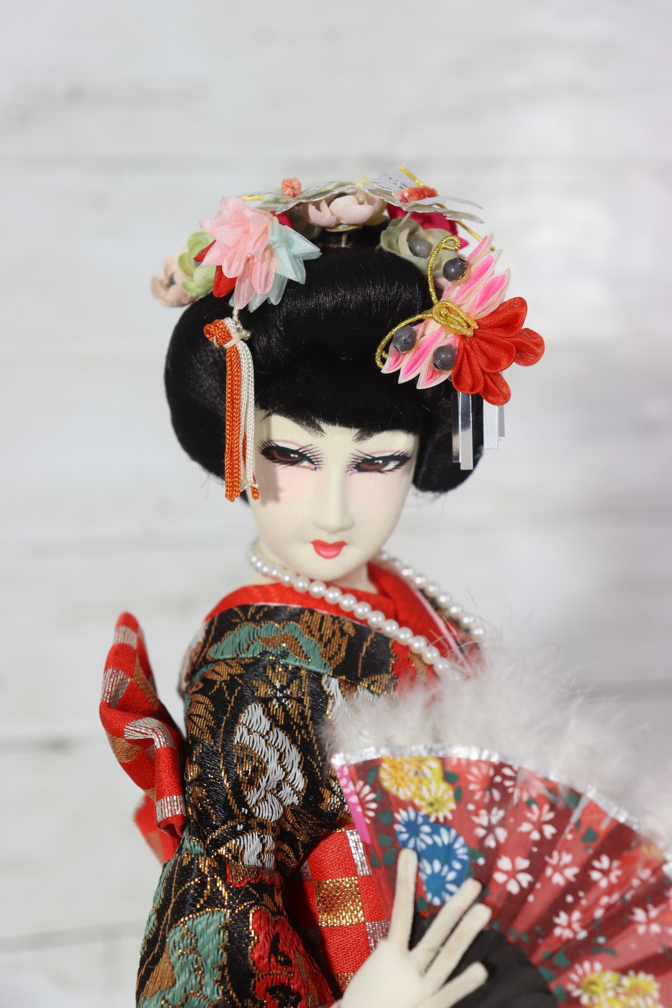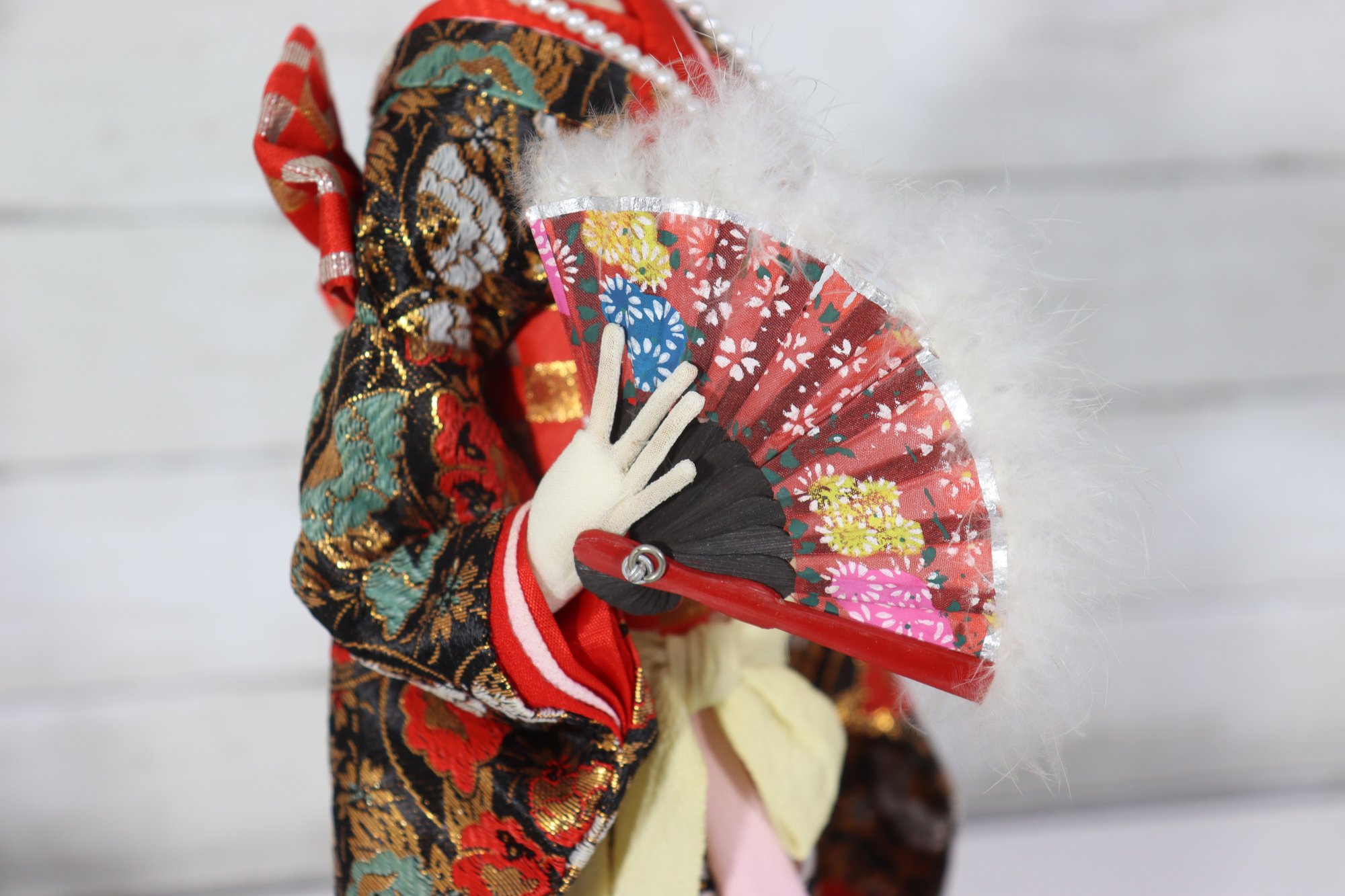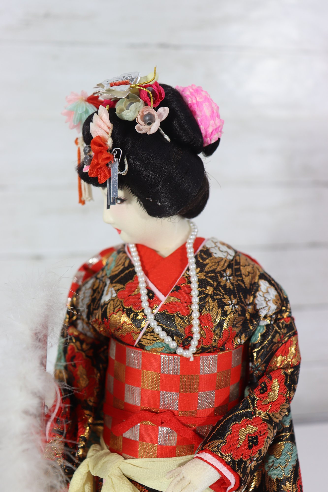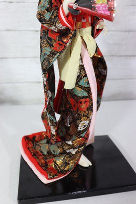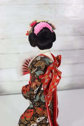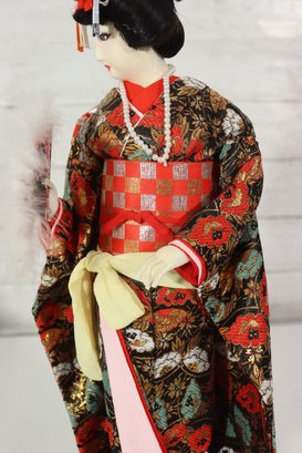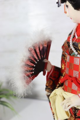 Japanese Style Geisha Figurine Elegant Kimono & Fan Hand-Painted 17 Tall