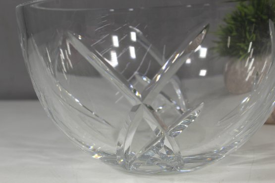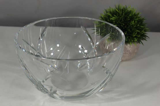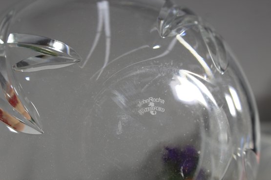 This auction features a stunning John Rocha Waterford crystal bowl, beautifully crafted with intricate designs that capture light and elegance. The piece showcases an exquisite pattern of intersecting cuts, adding depth and sophistication to its transparent crystal surface. The hallmark "John Rocha Waterford" is etched at the base, ensuring authenticity and quality.