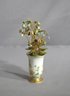 This charming K&A Krautheim Bavaria miniature porcelain vase, complete with a delightful brass and enamel flower bouquet, epitomizes grace and craftsmanship. The vase stands on a sleek brass base, its white porcelain body adorned with a dainty pattern of yellow blossoms and verdant leaves, reminiscent of a serene Bavarian meadow.