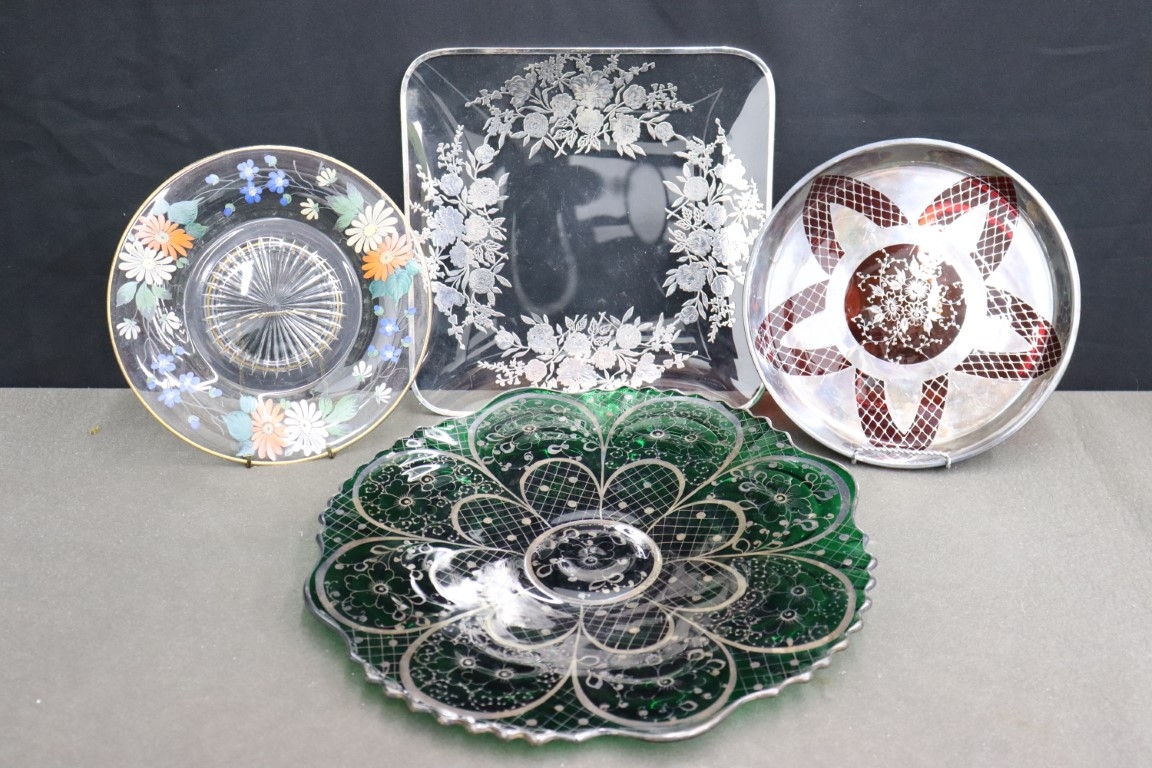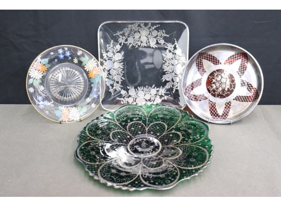 Kaleidoscopic Grouping Of Four Decorative Art Glass Serving Trays