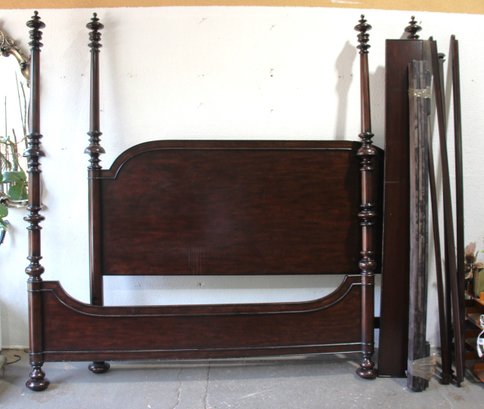 Make a bold and elegant statement with this stunning king-size four-poster bed frame crafted from rich mahogany wood. Featuring beautifully turned posts with detailed finials and classic sleigh-style curves on both headboard and footboard, this piece offers timeless style and grandeur.